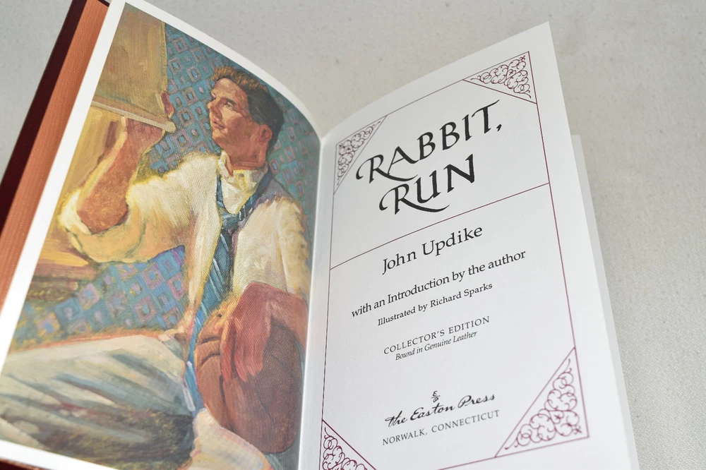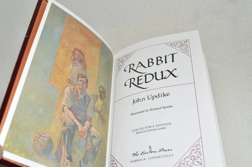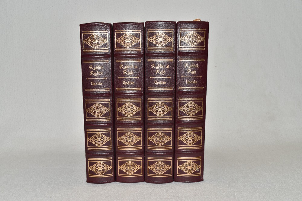 From the Easton Press Collection... John Updike's Classic Novels Rabbit Run Rabbit is Rich Rabbit at Rest Rabbit Redux Complete Four-Volume Matching Set by John Updike Beautifully Illustrated Copyright 1993 by The Easton Press Bound in Premium Full Leather This volume contains all of the classic Easton Press trimmings: Premium Leather Decorated Endleaves Distinctive Cover Design Hubbed Spine, Accented in Real 22KT Gold Satin Ribbon Page Marker Gilded Page Edges Long-lasting, High Quality Acid-neutral Paper Smyth-sewn Pages for Strength and Durability Beautiful Illustrations A very scarce set in any condition, these volumes are in Near Fine - Fine condition. The front and back covers are both in terrific condition showing edge wear and the gilded page edges show minor wear to the edges (see pictures of all edges). There is faint residue on the second page of each book. This set was published by Easton Press and would be a beautiful addition to your Easton Press collection. Hopefully you can add this set to your collection and enjoy it in the years to come... Please Email Me With Any Questions You Might Have! Shipping Info: Buyer to Pay Shipping and Handling International Bidders Pay Extra Shipping Seller Not Responsible For Uninsured Items Lost or Damaged in Mail Forms of Payment Accepted: Paypal Good luck and happy bidding! Powered by eBay Turbo Lister The free listing tool. List your items fast and easy and manage your active items.
