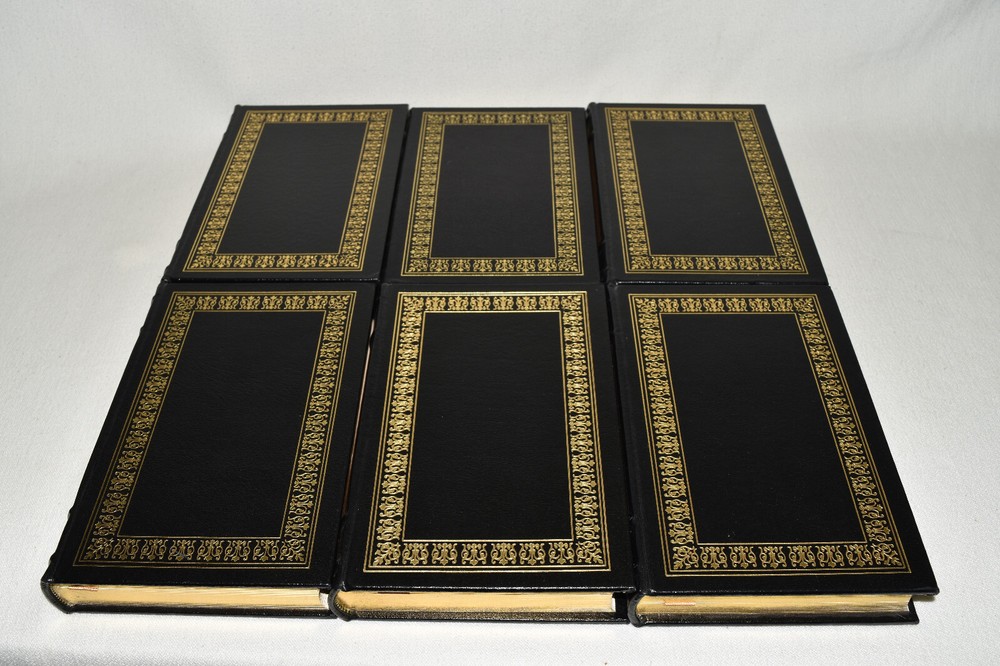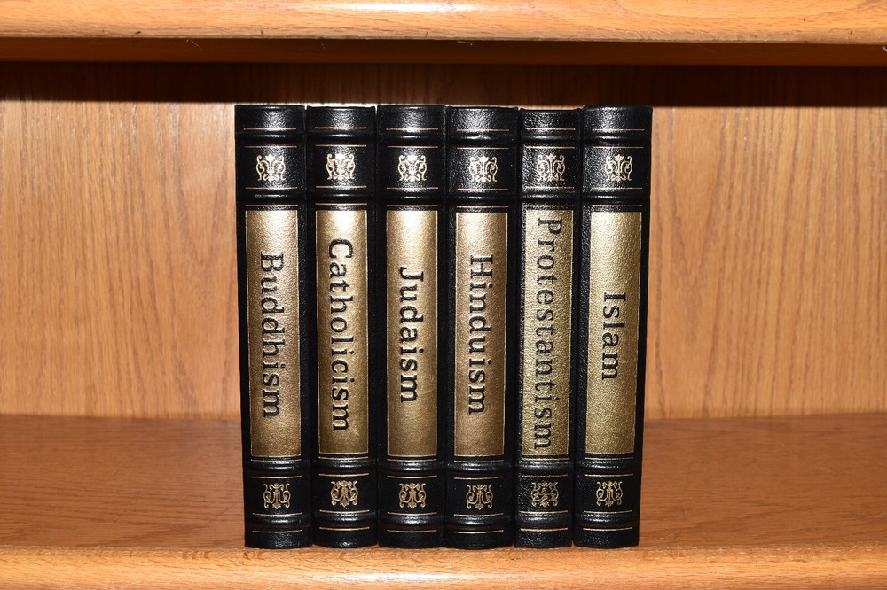 From the Easton Press Collection... Buddhism Judaism Islam Hinduism Protestantism Catholicism Six Volume Matching Set Collector's Editions Copyright 1994 by The Easton Press Bound in Premium Full Leather This set contains all of the classic Easton Press trimmings: Premium Leather Silk Moire Endleaves Distinctive Cover Design Hubbed Spine, Accented in Real 22KT Gold Satin Ribbon Page Marker Gilded Page Edges Long-lasting, High Quality Acid-neutral Paper Smyth-sewn Pages for Strength and Durability Beautiful Illustrations This set is in Fine condition. The front and back covers are both in terrific condition (a few small bumps) and the gilded page edges show minor wear (see pictures of all sides). There are no markings, or other signs of prior ownership in either book. This set is part of the Easton Press Collection and would be a beautiful addition to your Easton Press collection. Hopefully you can add this set to your collection and enjoy it in the years to come... Please Email Me With Any Questions You Might Have! Shipping Info: Buyer to Pay Shipping & Handling International Bidders Pay Extra Shipping Good luck and happy bidding!