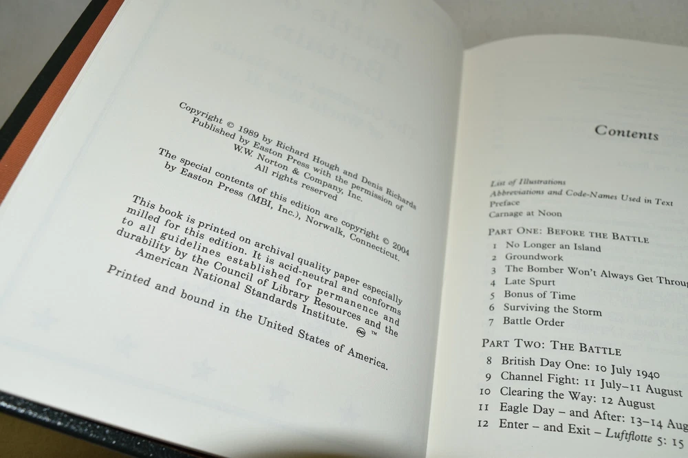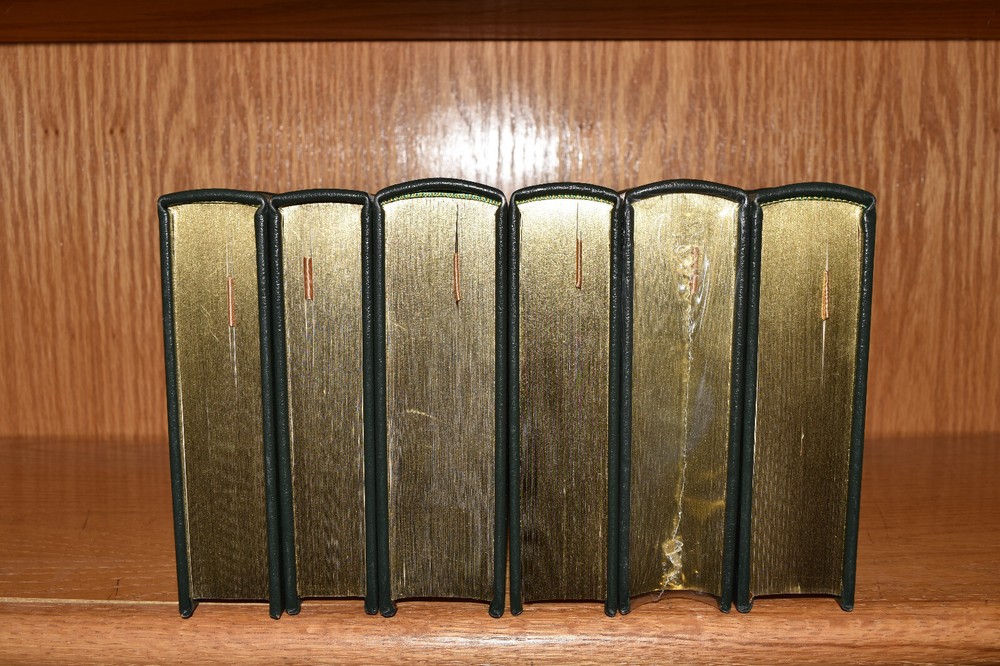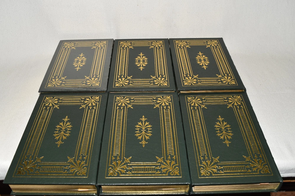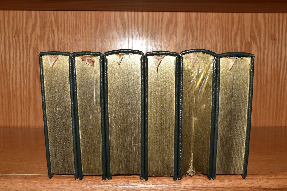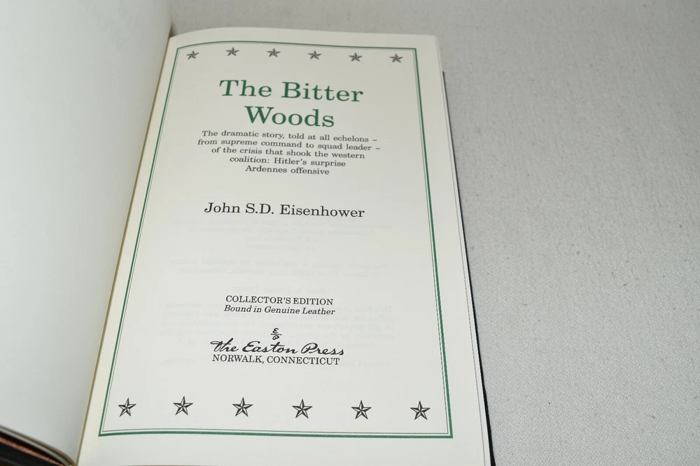 From the Easton Press Collection... D-Day by Stephen E. Ambrose The Battle of Britain by Richard Hough and Denis Richards Stalingrad by Antony Beevor The Bitter Woods by John S. D. Eisenhower An Army at Dawn by Rick Atkinson Bitter Victory by Carlo D'Este Complete Six-Volume Set Beautifully Illustrated with Maps and Photos Copyright 2004 by The Easton Press Bound in Premium Full Leather This volume contains all of the classic Easton Press trimmings: Premium Leather Decorated Endleaves Distinctive Cover Design Hubbed Spine, Accented in Real 22KT Gold Satin Ribbon Page Marker Gilded Page Edges Long-lasting, High Quality Acid-neutral Paper Smyth-sewn Pages for Strength and Durability Beautiful Illustrations A very scarce set in any condition, these volumes are in Fine condition. The front and back covers are both in terrific condition and the gilded page edges show minor wear (see pictures of all edges). There are blank bookplates on the second page of each book except for D-Day. This set was published by Easton Press and would be a beautiful addition to your Easton Press collection. Hopefully you can add this set to your collection and enjoy it in the years to come... Please Email Me With Any Questions You Might Have! Shipping Info: Buyer to Pay Shipping and Handling International Bidders Pay Extra Shipping Seller Not Responsible For Uninsured Items Lost or Damaged in Mail Good luck and happy bidding! \