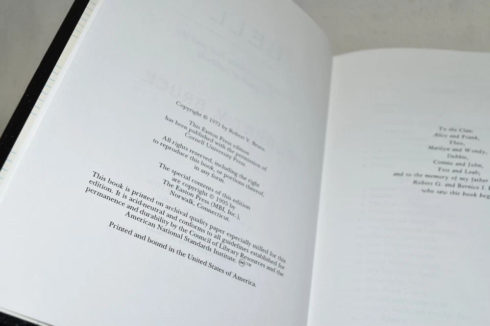 From the Easton Press Library of American History... Alexander Graham Bell and The Conquest of Solitude by Robert Bruce Collector's Edition Copyright 1995 by The Easton Press Bound in Premium Full Leather This volume contains all of the classic Easton Press trimmings: Premium Leather Decorated Endleaves Distinctive Cover Design Hubbed Spine, Accented in Real 22KT Gold Satin Ribbon Page Marker Gilded Page Edges Long-lasting, High Quality Acid-neutral Paper Smyth-sewn Pages for Strength and Durability Beautiful Illustrations A very scarce title in any condition, this Easton Press Edition is in Fine condition. The front and back covers are both in terrific condition and the gilded page edges show minor wear on the bottom corner (see pictures of all sides of gilt). There is faint residue on the second page. This book is part of the Library of American History Collection published by Easton Press. It comes complete with Collector's Notes and would be a beautiful addition to your Easton Press collection. Please Email Me With Any Questions You Might Have! Shipping Info: Buyer to Pay Shipping and Handling International Bidders Pay Extra Shipping Seller Not Responsible For Uninsured Items Lost or Damaged in Mail Forms of Payment Accepted: Paypal Good luck and happy bidding! Powered by eBay Turbo Lister The free listing tool. List your items fast and easy and manage your active items.