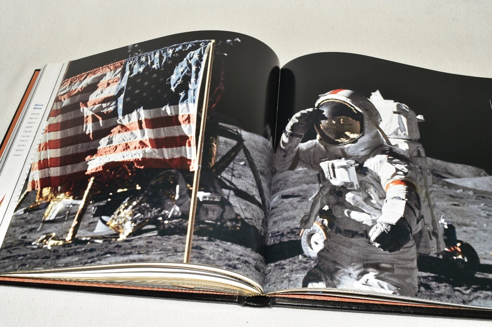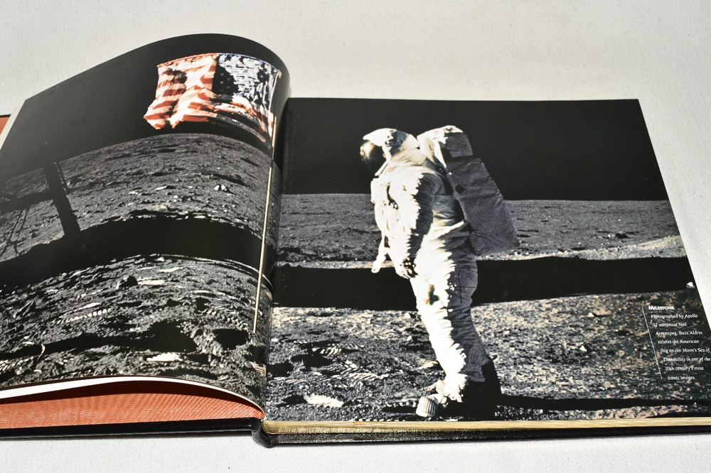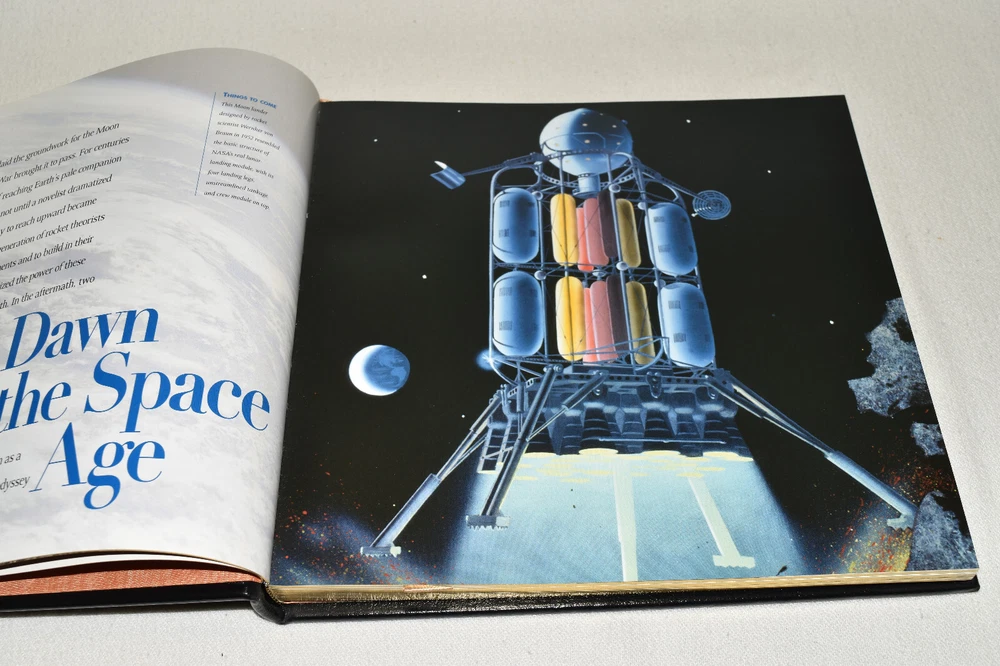 This stunning Easton Press edition of *Apollo: The Epic Journey to the Moon* is a collector's dream! The premium leather binding, 22K gold accents, and gilded edges make it feel luxurious. The illustrations are vivid, and the Smyth-sewn pages ensure durability. A must-have for space enthusiasts and book lovers alike—truly a masterpiece on the shelf!
