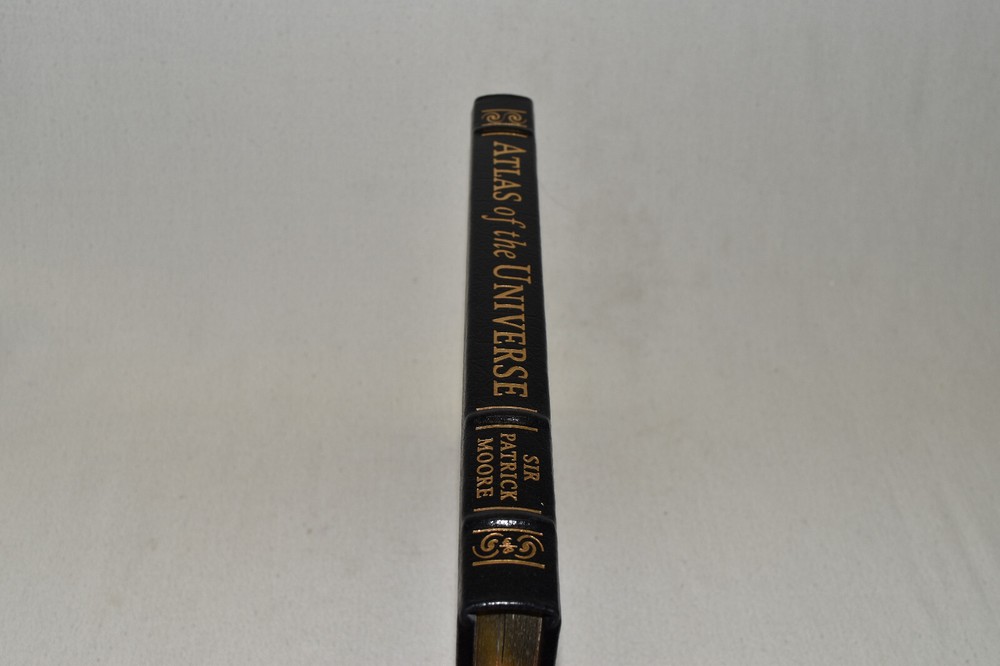 From the Easton Press Collection... Atlas of the Universe by Sir Patrick Moore C ollector's Edition Copyright 2003 by The Easton Press Bound in Premium Full Leather This volume contains all of the classic Easton Press trimmings: Premium Leather Silk Moire Endleaves Distinctive Cover Design Hubbed Spine, Accented in Real 22KT Gold Satin Ribbon Page Marker Gilded Page Edges Long-lasting, High Quality Acid-neutral Paper Smyth-sewn Pages for Strength and Durability Beautiful Illustrations A very scarce title in any condition, this Easton Press First Limited Edition is in Fine condition. The front and back covers are both in terrific condition and the gilded page edges show faint wear (see pictures of all gilt sides). There is a blank bookplate affixed to the second page. This book was published by Easton Press and would be a beautiful addition to your Easton Press collection. Hopefully you can add this book to your collection and enjoy it in the years to come... Please Email Me With Any Questions You Might Have! Shipping Info: Buyer to Pay Shipping and Handling International Bidders Pay Extra Shipping Seller Not Responsible For Uninsured Items Lost or Damaged in Mail Forms of Payment Accepted: Paypal Good luck and happy bidding! Powered by eBay Turbo Lister The free listing tool. List your items fast and easy and manage your active items.