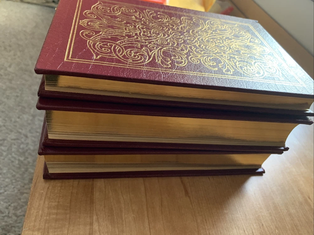 Easton Press Alexander Solzhenitsyn 3 Volume Set Collectors Editions Leather. Very nice set bound in leather with gold leaf gilt edges and built in ribbon page marker. All 3 have very tight spines….likely never read. From the estate of an avid Easton collector. I believe she bought them and just shelved them. She did sign the bookplate in every one of her books though. See pics.