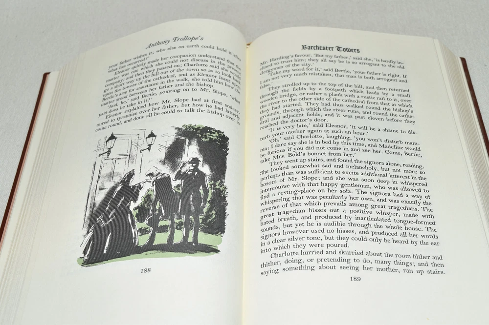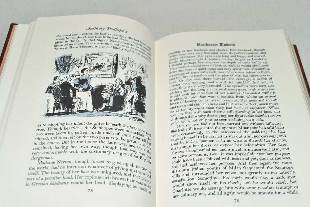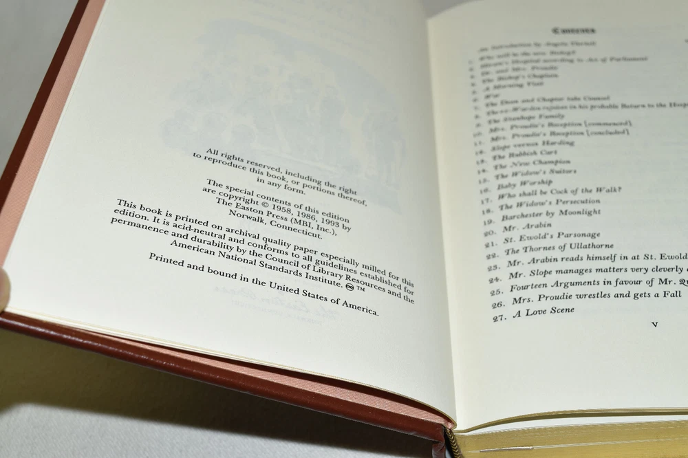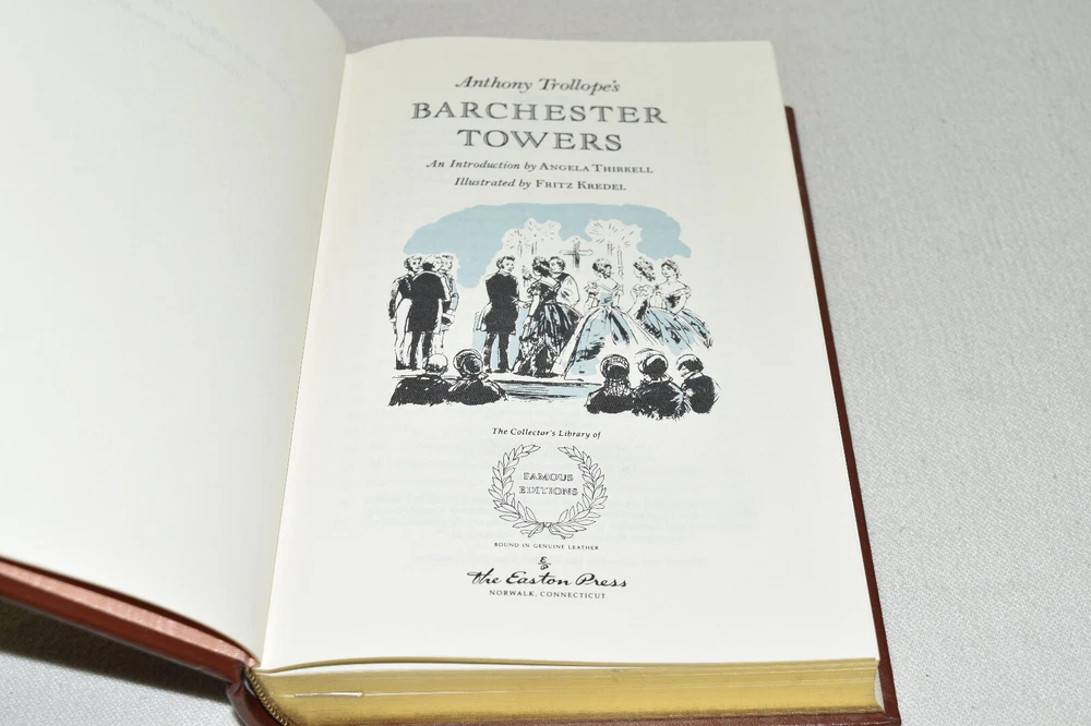 From the Easton Press Library of Famous Editions Collection... Barchester Towers by Anthony Trollope Introduced by Angela Thirkell Illustrated by Fritz Kredel Copyright 1993 by The Easton Press Bound in Premium Full Leather This volume contains all of the classic Easton Press trimmings: Premium Leather Silk Moire Endleaves Distinctive Cover Design Hubbed Spine, Accented in Real 22KT Gold Satin Ribbon Page Marker Gilded Page Edges Long-lasting, High Quality Acid-neutral Paper Smyth-sewn Pages for Strength and Durability Beautiful Illustrations A very scarce title in any condition, this volume is in Fine condition. The front and back covers are both in terrific condition and the gilded page edges show minor wear to the edges (see pictures of all edges). There is faint residue on the second page. This book is part of the Library of Famous Editions Collection published by Easton Press. It comes complete with Collector's Notes and would be a beautiful addition to your Easton Press collection. Hopefully you can add this book to your collection and enjoy it in the years to come... Please Email Me With Any Questions You Might Have! Shipping Info: Buyer to Pay Shipping and Handling International Bidders Pay Extra Shipping Seller Not Responsible For Uninsured Items Lost or Damaged in Mail Forms of Payment Accepted: Paypal Good luck and happy bidding! Powered by eBay Turbo Lister The free listing tool. List your items fast and easy and manage your active items.