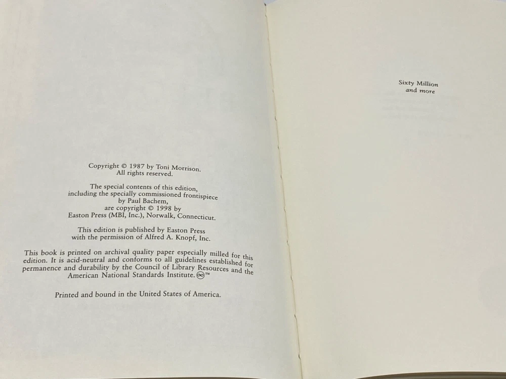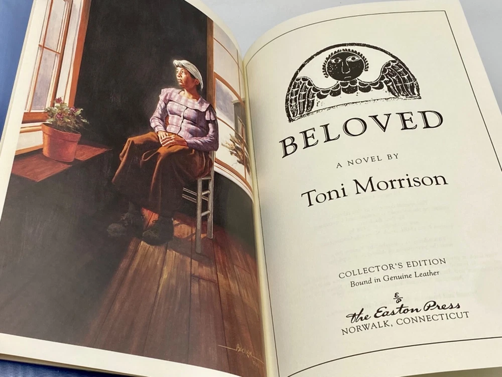 MAKES THE PERFEC GIFT FOR ANY FAN OF TONI MORRISON / THE CLASSICS / PULITZER-PRIZE WINNING AMERICAN LITERATURE ** PLEASE READ : Mahalo for taking the time to look at our listing. We truly appreciate it. We always do our BEST to give you the most accurate description of these beautiful books. If, however, you have any SPECIFIC questions about the SIZE of the book, NUMBER of pages, TYPE of leather, SMELL or FEEL of the book, PLEASE email us through EBay’s mail system BEFORE you bid, and we will be HAPPY to give you more information. We want you to be completely happy with your purchase and keep you as our customers for years to come!** DESCRIPTION: Easton Press full-leather binding LONG OUT OF PRINT edition of BELOVED by TONI MORRISON. THIS IS A SCARCE , ONE OF THE MOST DIFFICULT TO FIND HEIRLOOM EASTON WITH LAVISH GILT IMPRESSIONS TO THE BOARDS AND SPINE with BEAUTIFUL ILLUSTRATIONS. IT IS ONE OF THE MOST HIGHLY-PRIZED & MOST BEAUTIFUL EDITIONS OF THIS CLASSIC YOU CAN FIND. 🍍 NOT INCLUDED… 😃 ABOUT THE BOOK: Winner of the Pulitzer Prize, Toni Morrison’s Beloved is a spellbinding and dazzlingly innovative portrait of a woman haunted by the past. Sethe was born a slave and escaped to Ohio, but eighteen years later she is still not free. She has borne the unthinkable and not gone mad, yet she is still held captive by memories of Sweet Home, the beautiful farm where so many hideous things happened. Meanwhile Sethe’s house has long been troubled by the angry, destructive ghost of her baby, who died nameless and whose tombstone is engraved with a single word: Beloved. Sethe works at beating back the past, but it makes itself heard and felt incessantly in her memory and in the lives of those around her. When a mysterious teenage girl arrives, calling herself Beloved, Sethe’s terrible secret explodes into the present. Combining the visionary power of legend with the unassailable truth of history, Morrison’s unforgettable novel is one of the great and enduring works of American literature. CONDITION: Book is in LIKE NEW condition for its age with only a couple of negligible rubs to the gilt page ends (SEE PICS FOR BETTER DETAILS). NO ATTACHED BOOKPLATES, WRITING FROM PREVIOUS OWNER, ETC. It is a GORGEOUS edition! SHIPPING: FREE TO US ADDRESSES ONLY. INTERNATIONAL $ based on location. WE SHIP PRIORITY MAIL & PACK VERY WELL. Please check out our other listings of Easton Press, Franklin Library, Folio Society, Heritage Press, International Collectors Library, Limited Editions Club, and First Edition Library editions. WE DO COMBINE SHIPPING IF YOU PURCHASE MORE THAN ONE COPY. Mahalo for looking at our listings! By bidding/purchasing this item, you are helping a very grateful family who sends you our WARMEST ALOHA & MAHALO!