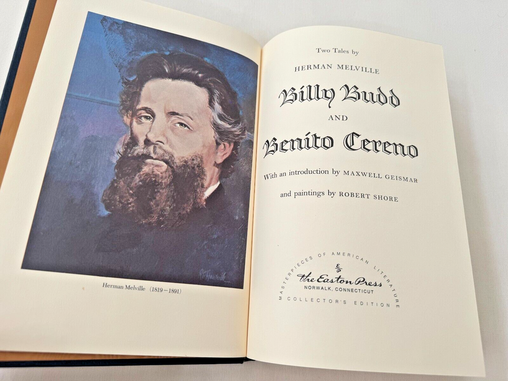 From the Easton Press Library of American Literature... Billy Budd & Benito Cereno by Herman Melville Paintings by Robert Shore Copyright 1980 by The Easton Press Bound in Premium Full Leather This volume contains all of the classic Easton Press trimmings: Premium Leather Decorated Endleaves Distinctive Cover Design Hubbed Spine, Accented in Real 22KT Gold Satin Ribbon Page Marker Gilded Page Edges Long-lasting, High Quality Acid-neutral Paper Smyth-sewn Pages for Strength and Durability Beautiful Illustrations DESCRIPTION A very scarce title in any condition, this Edition is in Absolute Mint and Unread condition. The front and back covers are in Perfect condition and the gilded page edges show hardly any wear at all! There are no markings, bookplates, or other signs of prior ownership in this book. This book is part of the Masterpieces of American Literature Collection published by The Easton Press and would be a beautiful addition to your Easton Press collection. Overall, this copy is a grade collector's set. This set is very elusive in this superior condition, as only a limited number of them were ever published, so now is the time to act. Hopefully you can add this set to your collection and enjoy it in the years to come... SHIPPING POLICY We take great care packaging every item to ensure safe shipment to you. Items are packaged using plenty of bubble wrap and packaged securely in a sturdy box. Our secure shipping methods have resulted in zero damaged items in over 15 years! Items are shipped out within 1 - 3 days of payment being received. RETURN & REFUND POLICY We accept refunds within 30 days of purchase. If you are not 100% satisfied with your purchase, please contact us about a refund, or initiate a refund through eBay. CONTACT US We are committed to providing our customers with the best possible on-line shopping experience. This includes a commitment to excellent customer service, before you purchase as well as after your order has been delivered. Please feel free to submit any questions or inquiries regarding this item or your order by sending us a message through the eBay messaging system. We will typically respond within 24 hours of receiving your message.