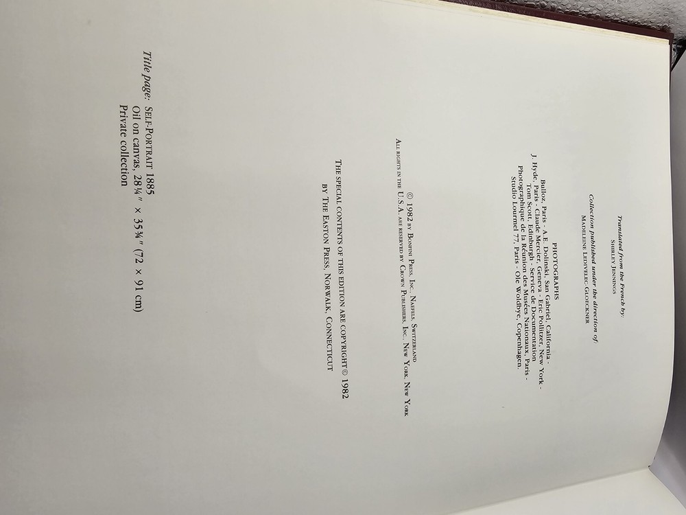 This limited edition collector's book by Jean Dominique Rey showcases the beautiful paintings of Berthe Morisot. The book is bound in high-quality leather and features exquisite illustrations that bring the artist's work to life. Published by Easton Press in 1982, this book is a must-have for any art collector or enthusiast. The author's insights into the artist's work provide a unique perspective that makes this book a valuable addition to any collection. The book is written in English and is perfect for those interested in fine arts and collections.