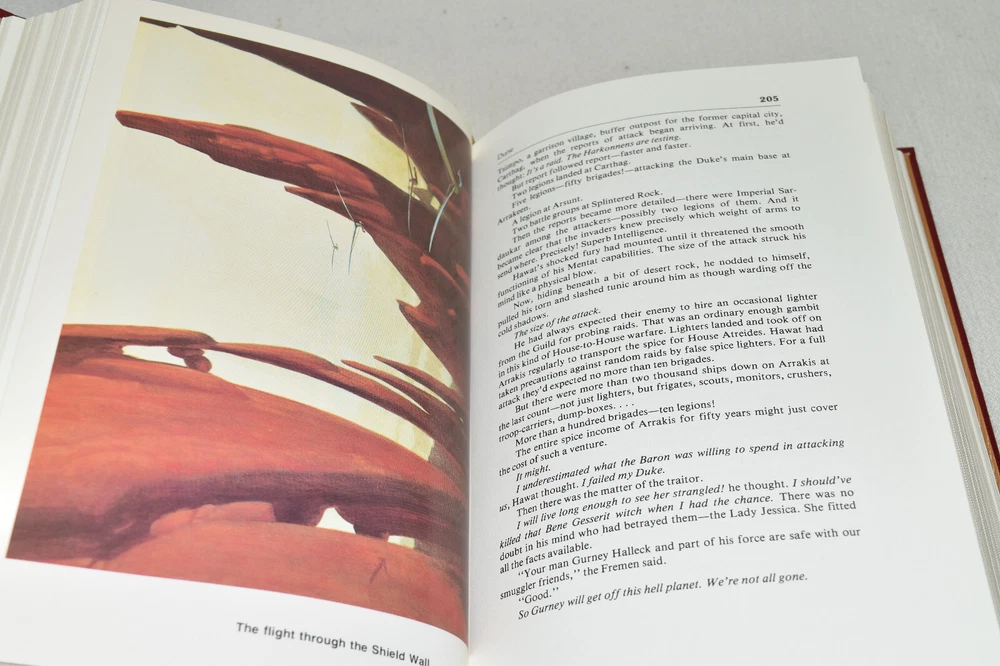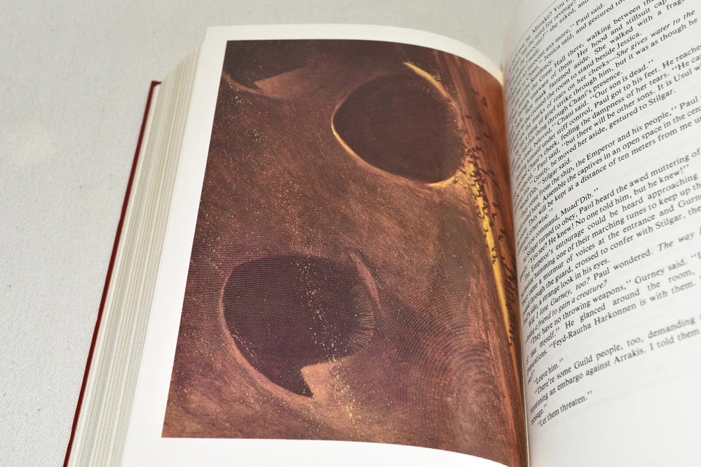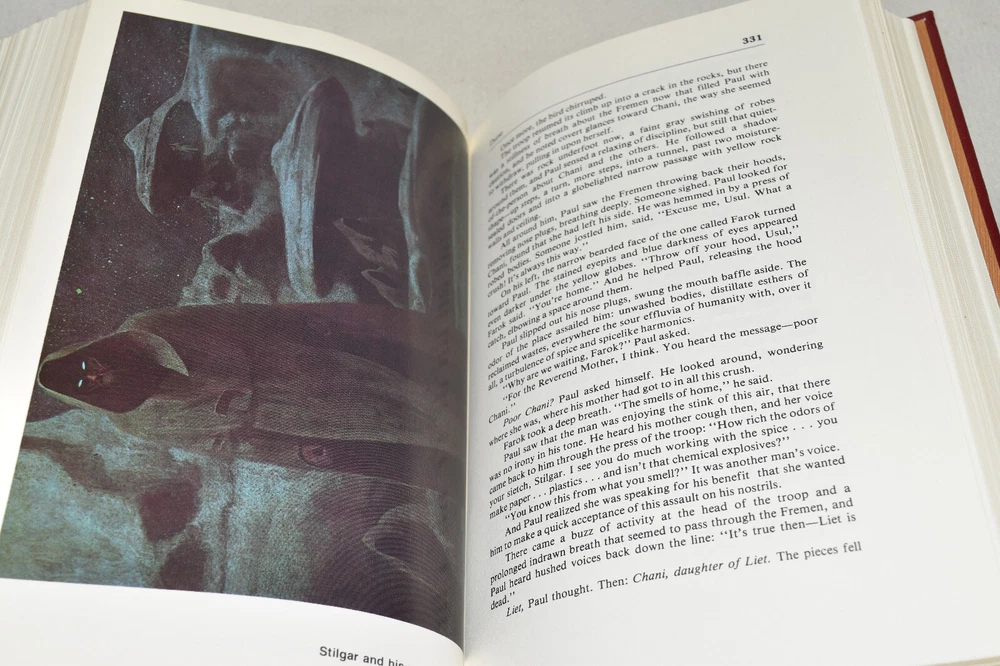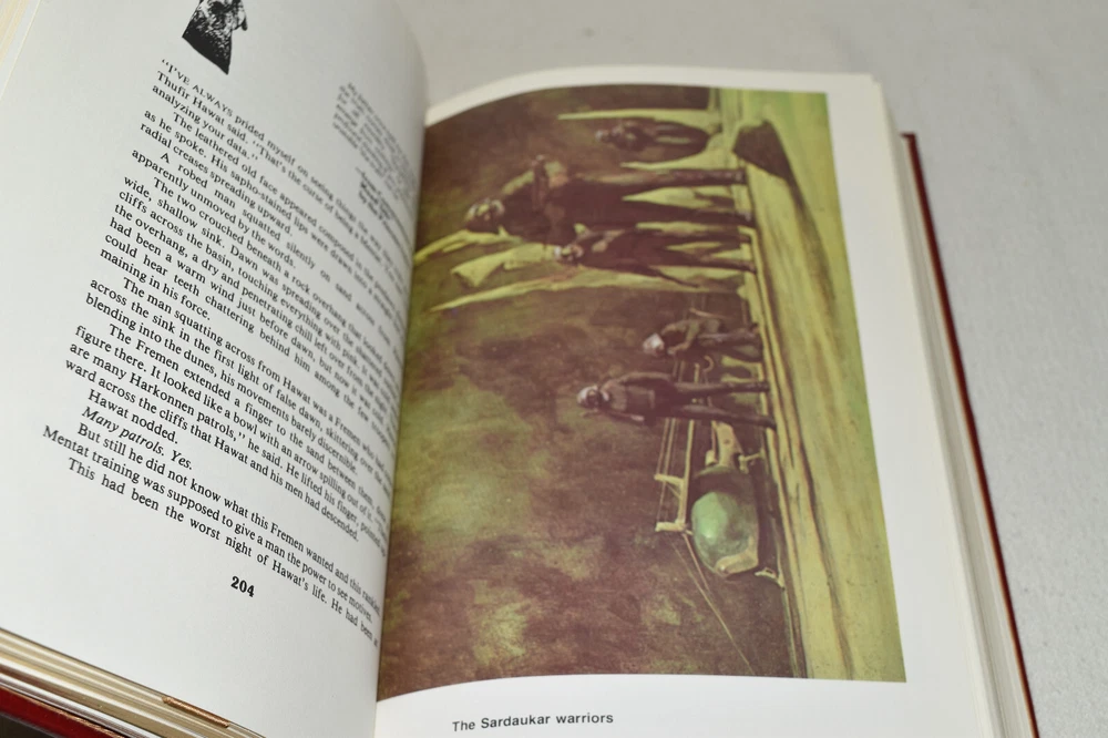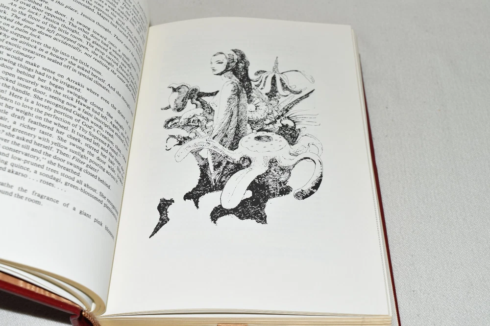From the Easton Press Masterpieces of Science Fiction Collection... Dune Memorial Edition by Frank Herbert Artwork by John Schoenherr Copyright 1987 by The Easton Press Bound in Premium Full Leather This volume contains all of the classic Easton Press trimmings: Premium Leather Decorated Endleaves Distinctive Cover Design Hubbed Spine, Accented in Real 22KT Gold Satin Ribbon Page Marker Gilded Page Edges Long-lasting, High Quality Acid-neutral Paper Smyth-sewn Pages for Strength and Durability Beautiful Illustrations A very scarce title in any condition, this volume is in Fine condition. The front and back covers are both in terrific condition and the gilded page edges show only faint wear (see pictures of all edges). There is very faint residue on the second page. This book is part of the Masterpieces of Science Fiction Collection published by Easton Press and would be a beautiful addition to your Easton Press collection. Overall, this copy is a grade collector's book. This book is very elusive in this superior condition, as only a limited number of them were ever published, so now is the time to act. Hopefully you can add this book to your collection and enjoy it in the years to come... Please Email Me With Any Questions You Might Have! Shipping Info: Buyer to Pay Shipping and Handling International Bidders Pay Extra Shipping Seller Not Responsible For Uninsured Items Lost or Damaged in Mail Forms of Payment Accepted: Paypal Good luck and happy bidding! Powered by eBay Turbo Lister The free listing tool. List your items fast and easy and manage your active items.