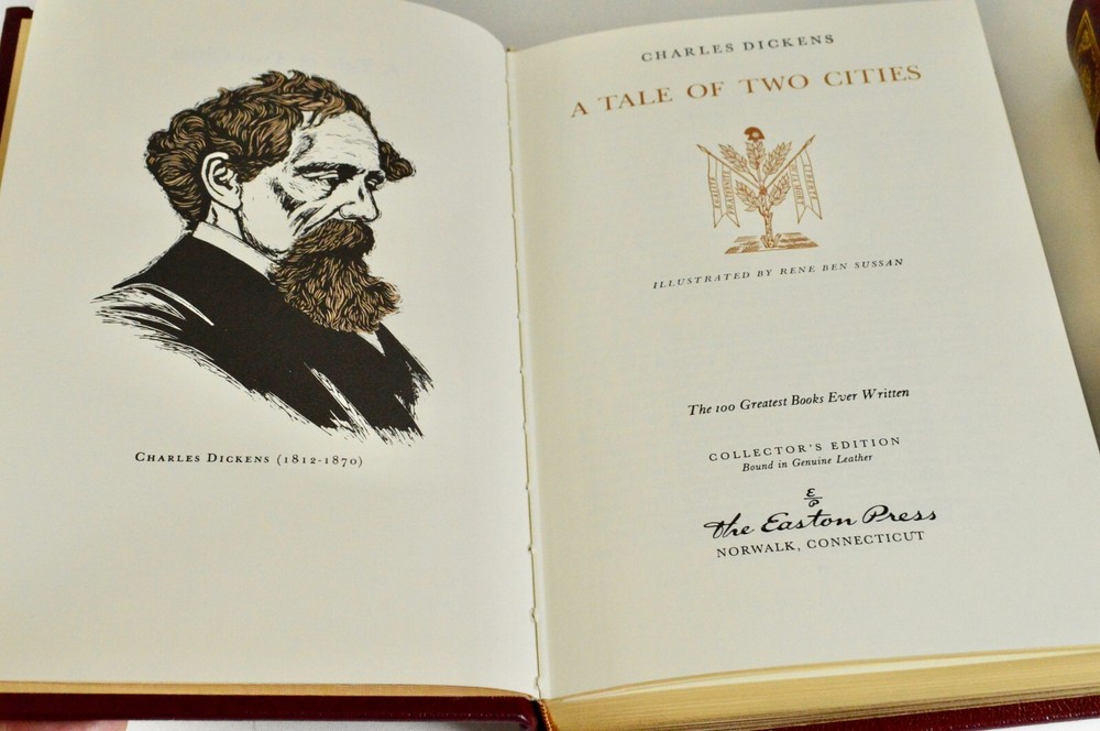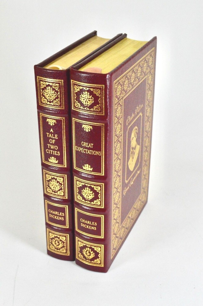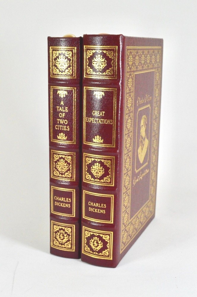From Easton Press - a 2-book set of Charles Dickens; Great Expectations and A Tale of Two Cities. Excellent condition. Easton Press is recognized as the highest quality modern leather books available, and will make a stunning addition to your library or a fitting start to a fine binding leather book collection. Each book is bound in a signature color, and exhibits 22 karat gold foil stamping of the titles and jacket designs. They are printed on archival quality acid-neutral paper and include silk moire endpapers, an expensive hubbed spine, bound-in silk ribbons bookmarks, gilded page edges, Smyth-sewn pages for strength and durability and often contain beautiful illustrations. ~~~~~~~~~~~~~~~~~~~~~ We take pride in offering items of extraordinary quality, value and condition. We offer the finest in modern leather-bound books and more. Books are sourced exclusively from pet and smoke free homes, and are carefully inspected. Other items are equally carefully sourced ... check out our other listings and see! Shipping is the responsibility of the buyer unless otherwise noted or agreed. Books are wrapped and protected in bubble wrapping for shipping, with additional cushioning paper filler in an appropriately sized carton. Most books will be shipped via USPS Media Mail or FedEx Home Delivery. International Shipping through eBay's Global Shipping Program only. All descriptions are to the best of our knowledge. Sales are made as-is and no warranty is offered as to authenticity or provenance. T itle passes to buyer upon shipment. All sales are final. Arizona sales tax applies. Returns are not accepted except in rare circumstances upon agreement. We also buy books and are always open to purchasing excellent condition books from Easton Press, Franklin Library, Folio Society and similar as well as other collectible books. See our website www.modernleatherbooks.com and let us know what you have. Thank you for considering our listing!