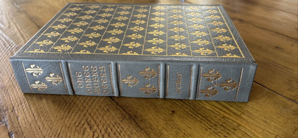 The Three Musketeers by Alexandre Dumas. Illustrated by Edy Legrand. 1978 Collector's Edition. Easton Press, Norwalk, CT. Gray leather with raised bands and gilt titles and decoration. Silk moire endpapers. Satin ribbon page saver and bookplate. AEG - All Edges Gilt. Octavo - 8vo. 7" x 10" The book appears to be new and unread. It is not sealed in shrink wrap. No obvious or evident shelf wear. Please check our other listings for more Easton Press books Feel free to contact us with questions or if you would like additional pictures. This item ships via USPS Media Mail. Please contact us if you are interested in expedited shipping. We gladly combine shipping when possible.