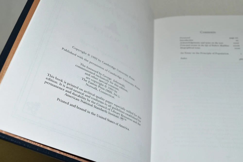 From the Easton Press Books that Changed the World Collection... An Essay on the Principle of Population by T. R. Malthus Foreword by George Zebrowski Introduction by Donald Winch Collector's Edition Copyright 1995 by The Easton Press Bound in Premium Full Leather This volume contains all of the classic Easton Press trimmings: Premium Leather Silk Moire Endleaves Distinctive Cover Design Hubbed Spine, Accented in Real 22KT Gold Satin Ribbon Page Marker Gilded Page Edges Long-lasting, High Quality Acid-neutral Paper Smyth-sewn Pages for Strength and Durability Beautiful Illustrations A very scarce title in any condition, this Easton Press First Limited Edition is in Fine condition. The front and back covers are both in terrific condition and the gilded page edges show minor wear (see pictures of all gilt sides). There is a minor residue on the second page. This book was published by Easton Press and would be a beautiful addition to your Easton Press collection. Hopefully you can add this book to your collection and enjoy it in the years to come... Please Email Me With Any Questions You Might Have! Shipping Info: Buyer to Pay Shipping and Handling International Bidders Pay Extra Shipping Seller Not Responsible For Uninsured Items Lost or Damaged in Mail Forms of Payment Accepted: Paypal Good luck and happy bidding! Powered by eBay Turbo Lister The free listing tool. List your items fast and easy and manage your active items.