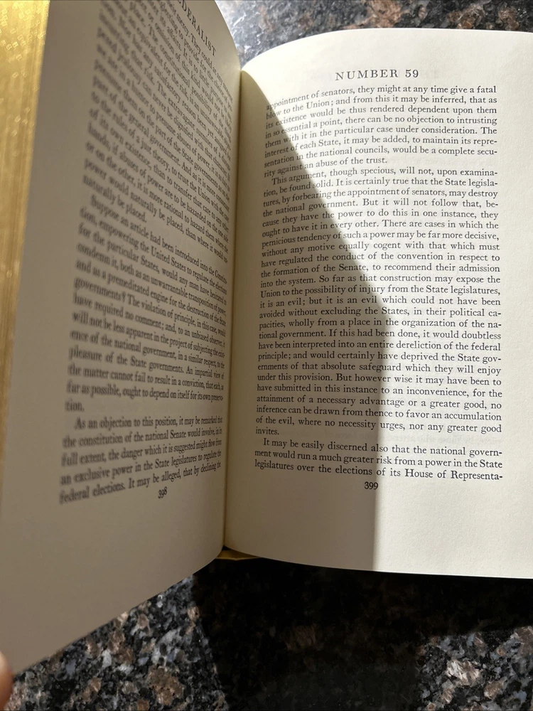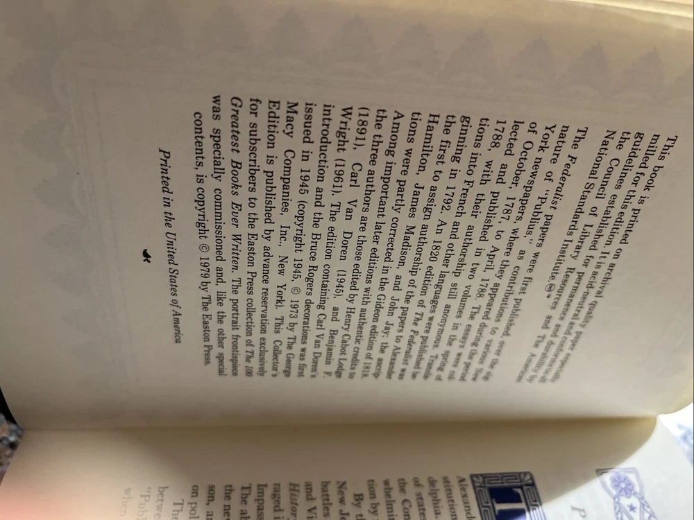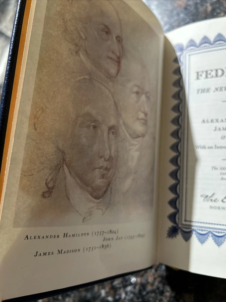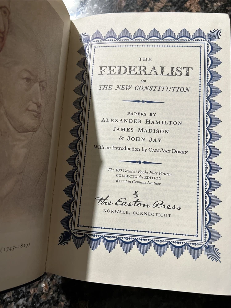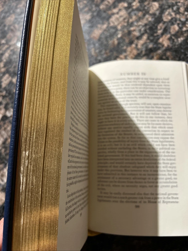 The Easton Press Federalist Papers Hamilton Madison Jay Collectors Limited Edition is a luxurious leather-bound book featuring a timeless masterpiece of American history - The Federalist Papers. Published by the Franklin Library like publisher in 1979, this special edition includes the works of Hamilton, Madison, and Jay, along with an introduction by Ronald Reagan. This collector's item is a must-have for history buffs and book enthusiasts alike, making it an ideal gift for those interested in Americana and the Constitution.