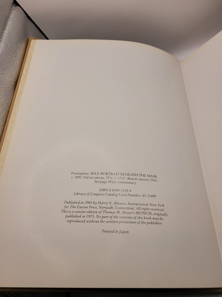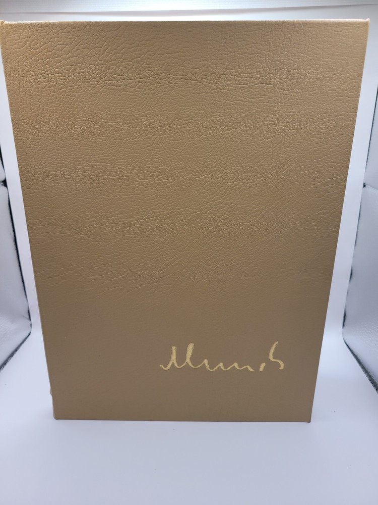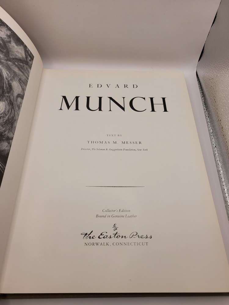 This is a beautiful leather-bound collector's edition of Edvard Munich's work from the Famous Artist Collection by Easton Press. It's a must-have for any art history or criticism enthusiast, with stunning illustrations and insightful commentary by Thomas M. Messer. This unit is in great shape and perfect for any collector or book lover.