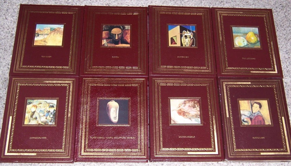 This stunning Easton Press GLORIOUS ART collection is a true masterpiece for art lovers! The 34 volumes feature breathtaking reproductions of iconic artworks, accompanied by insightful commentary. Each book is exquisitely bound in premium leather with elegant details like hubbed spines and ribbon markers. The large 9.5" x 12" format does justice to the art, making every page a visual feast. Out of print and highly sought after, this set is an incredible value compared to buying individual volumes. A must-have for collectors who appreciate fine craftsmanship and timeless beauty!