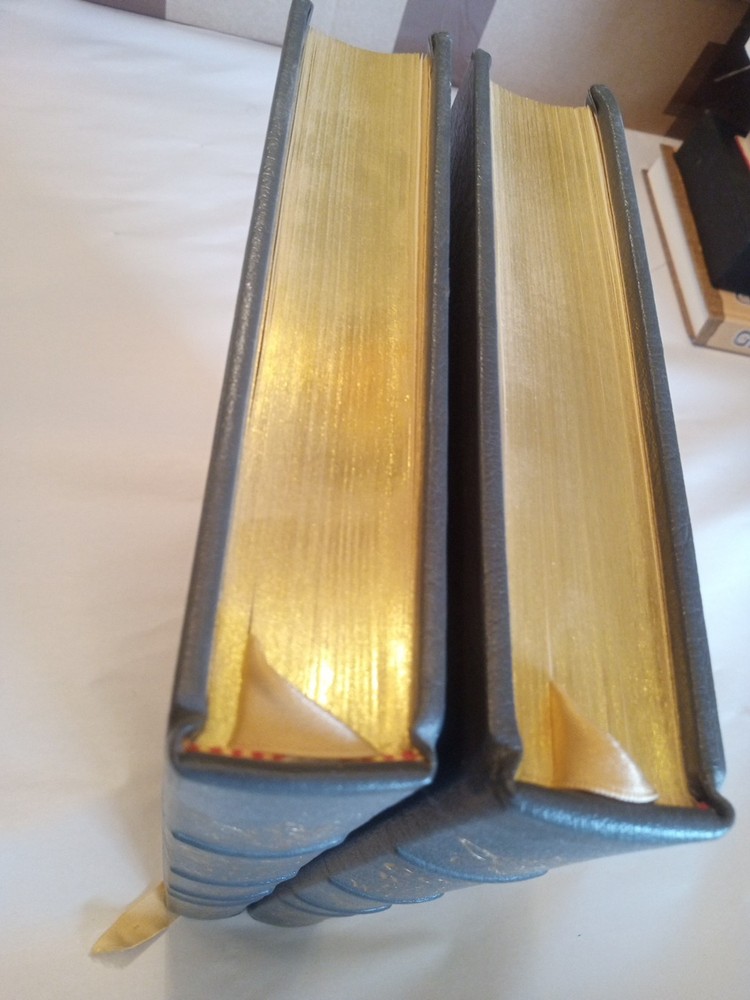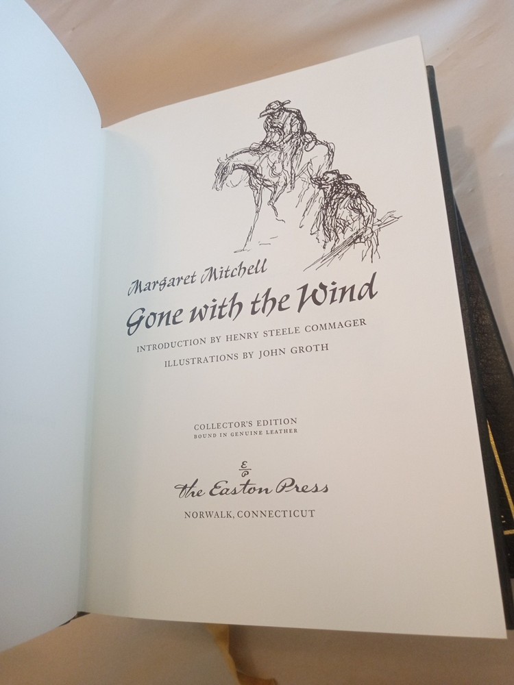 This Easton Press edition of *Gone With The Wind* is absolutely stunning! The two-volume set is in fantastic condition, with beautiful leather binding and gilt-edged pages. A must-have for any collector or fan of Margaret Mitchell's classic. The craftsmanship is impeccable, making it a true treasure for any bookshelf. Highly recommend!