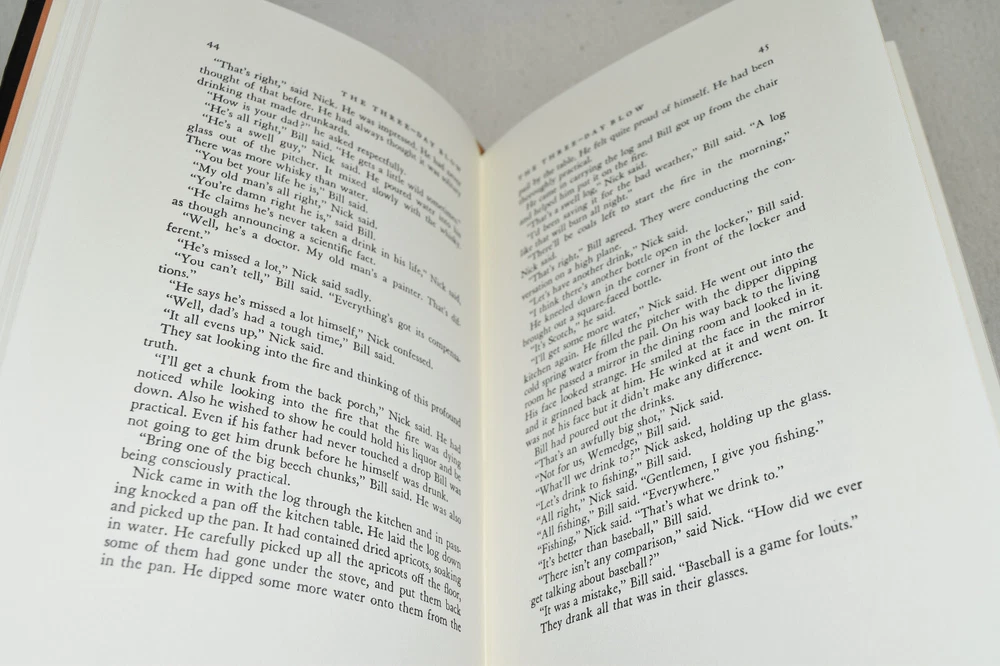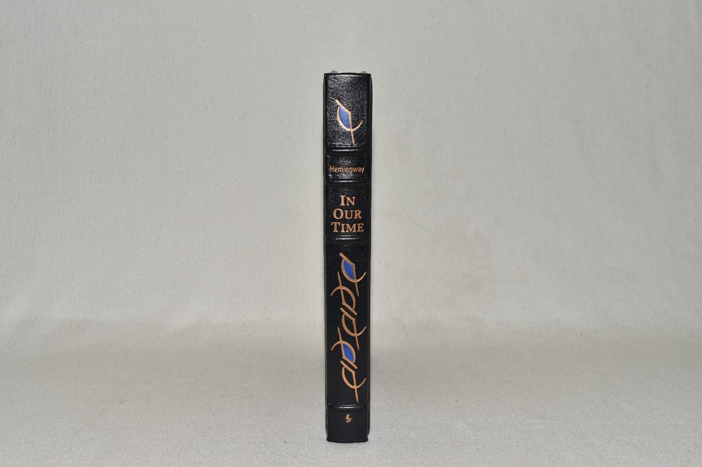 From the Easton Press Collection... In Our Time Stories by Ernest Hemingway by Ernest Hemingway Illustration by Alan Phillips C ollector's Edition Copyright 1990 by The Easton Press Bound in Premium Full Leather This volume contains all of the classic Easton Press trimmings: Premium Leather Silk Moire Endleaves Distinctive Cover Design Hubbed Spine, Accented in Real 22KT Gold Satin Ribbon Page Marker Gilded Page Edges Long-lasting, High Quality Acid-neutral Paper Smyth-sewn Pages for Strength and Durability Beautiful Illustrations A very scarce title in any condition, this Easton Press First Limited Edition is in Fine condition. The front and back covers are both in terrific condition and the gilded page edges show minor wear on the top edge (see pictures of all gilt sides). There are no markings, bookplates, or other signs of prior ownership in this book. This book was published by Easton Press and would be a beautiful addition to your Easton Press collection. Hopefully you can add this book to your collection and enjoy it in the years to come... Please Email Me With Any Questions You Might Have! Shipping Info: Buyer to Pay Shipping and Handling International Bidders Pay Extra Shipping Seller Not Responsible For Uninsured Items Lost or Damaged in Mail Forms of Payment Accepted: Paypal Good luck and happy bidding! Powered by eBay Turbo Lister The free listing tool. List your items fast and easy and manage your active items.