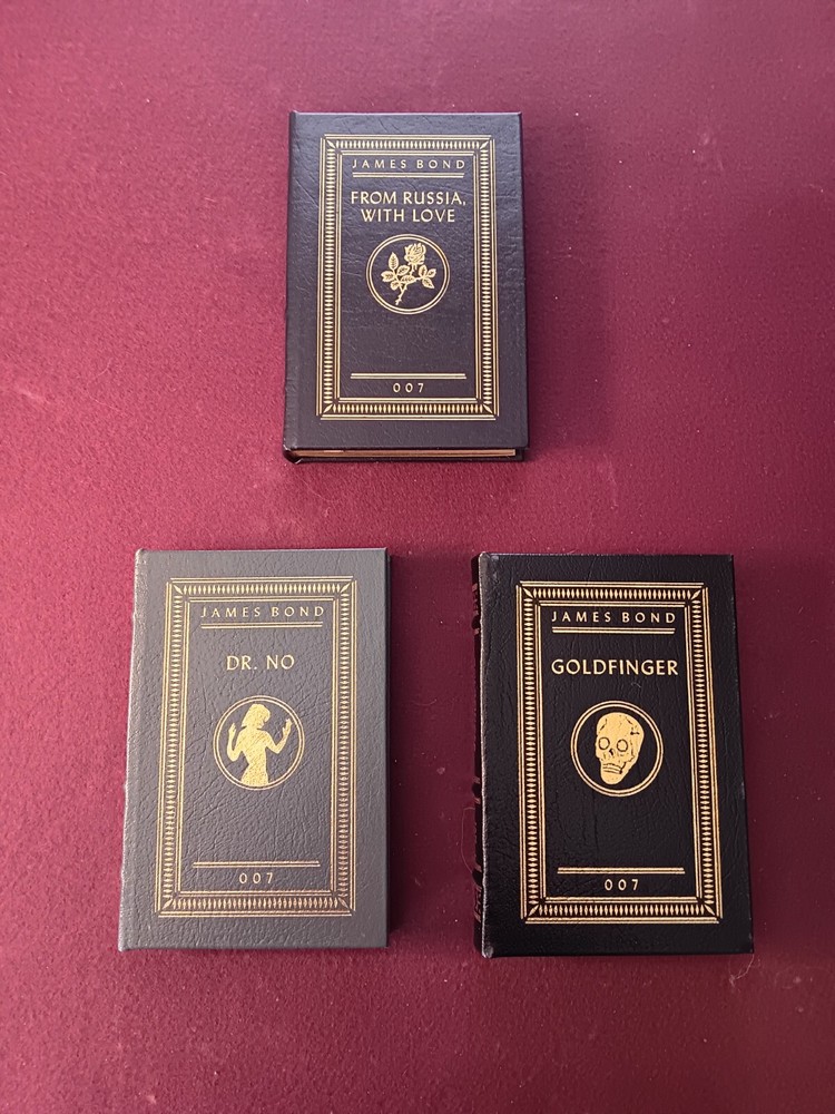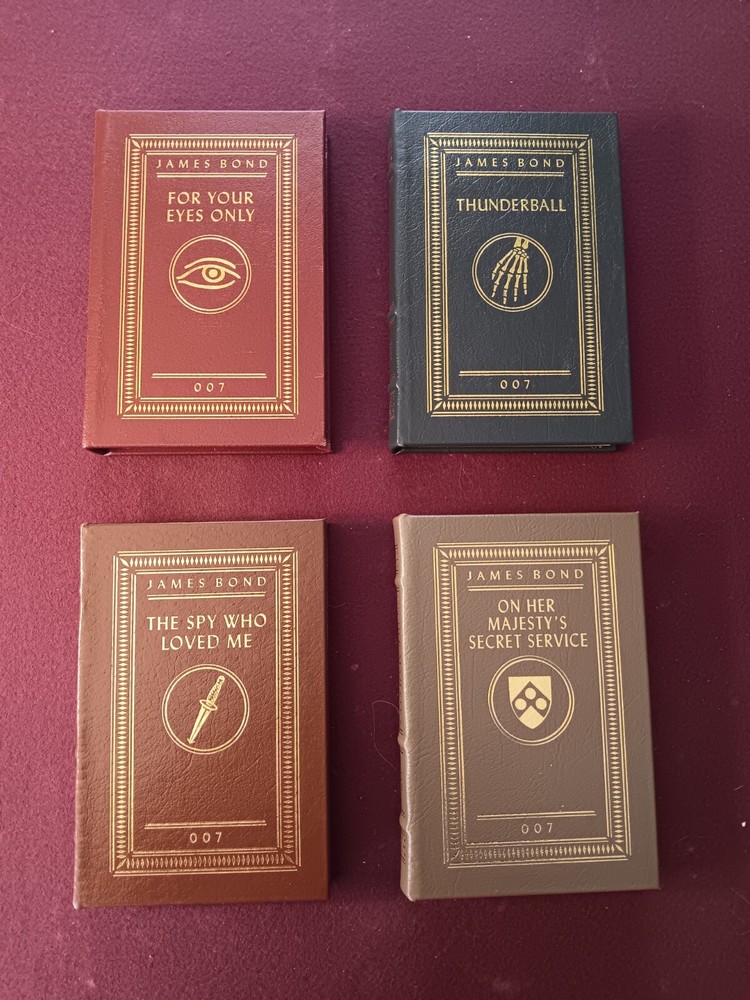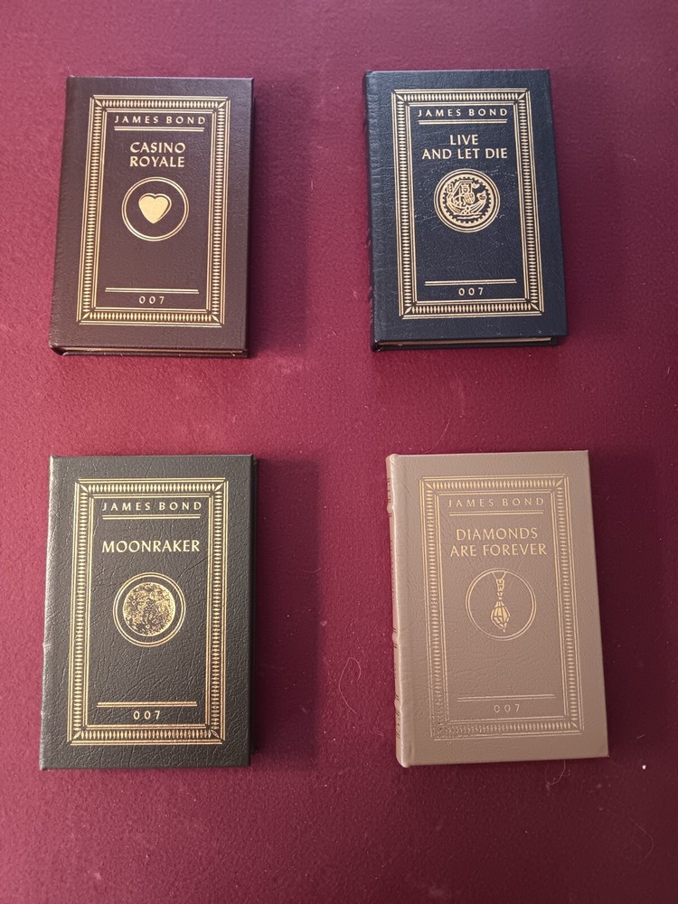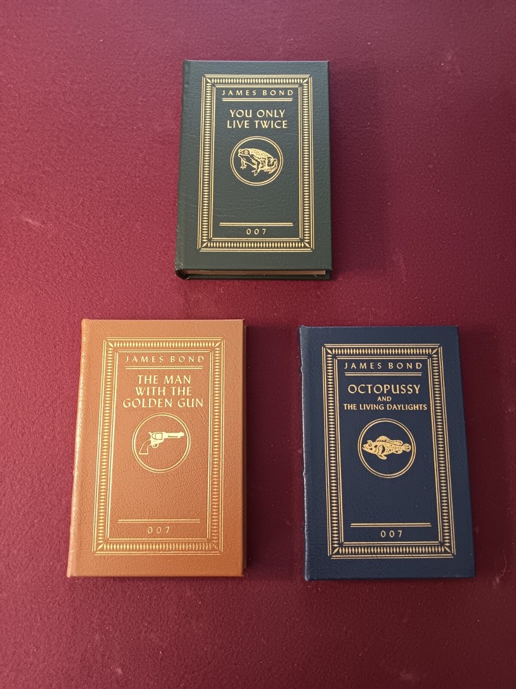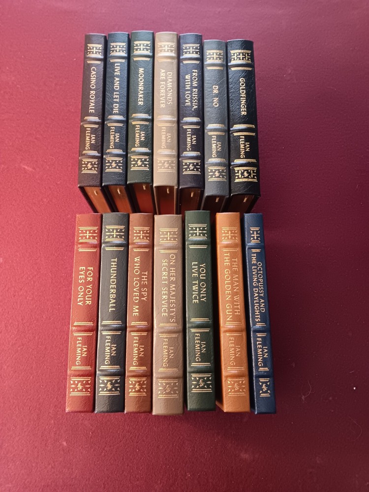 Complete 14 volume set of Ian Fleming's James Bond novels and short stories, published in gilt leatherbound hardcovers by Easton Press. Entire set will be shipped in a single box via USPS. Buyer may request and pay for a different shipping method.