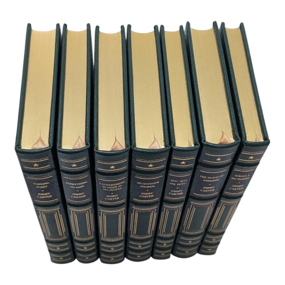 This is a complete set of 7 volumes of the Jimmy Carter Library, published by Easton Press. The books are hardback with leather binding and were made in the United States. The set includes signed copies of the books and is in English. The subject of the books is children's. /3000 Books have not been flipped through at all. Very stiff pages. Immaculate condition.