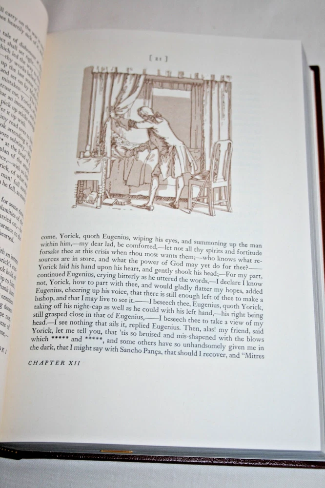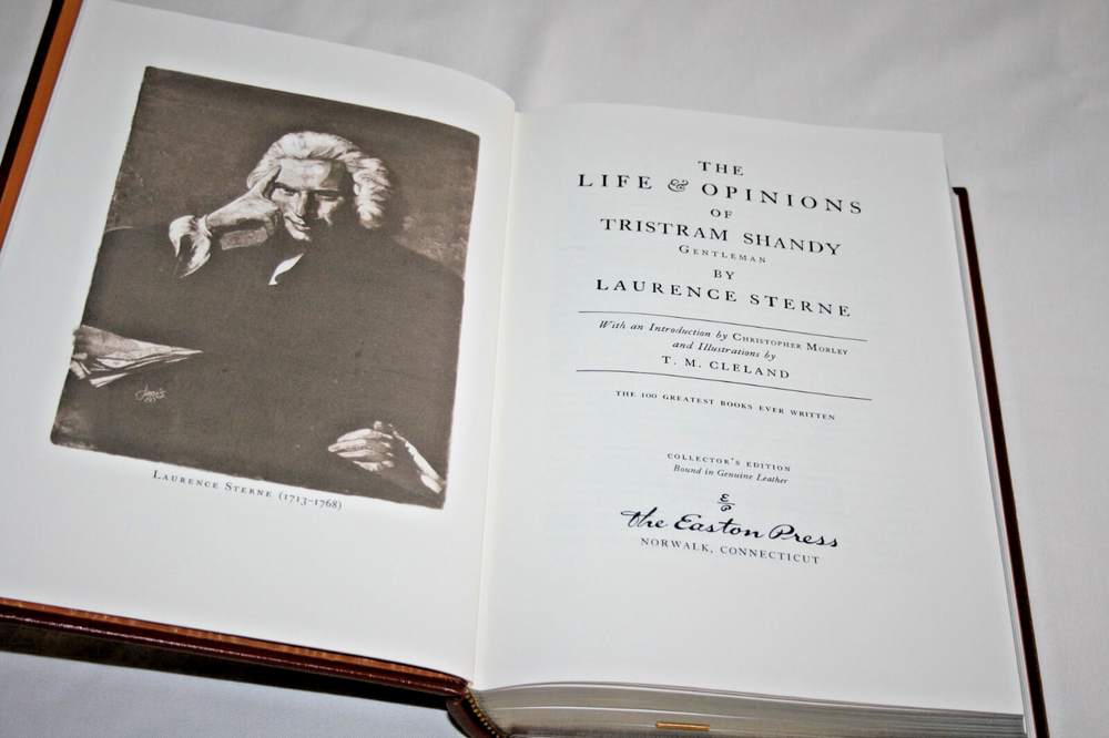From the Easton Press 100 Greatest Books Ever Written... The Life & Opinions of Tristram Shandy by Laurence Sterne Illustrated by T. M. Cleland Copyright 2003 by The Easton Press Bound in Premium Full Leather This volume contains all of the classic Easton Press trimmings: Premium Leather Silk Moire Endleaves Distinctive Cover Design Hubbed Spine, Accented in Real 22KT Gold Satin Ribbon Page Marker Gilded Page Edges Long-lasting, High Quality Acid-neutral Paper Smyth-sewn Pages for Strength and Durability Beautiful Illustrations DESCRIPTION A very scarce title in any condition, this Edition is in Absolute Mint and Unread condition. The front and back covers are in Perfect condition and the gilded page edges show no wear at all! There is no attached bookplate nor any other signs of previous ownership . This book is part of the 100 Greatest Books Ever Written Collection published by The Easton Press and would be a beautiful addition to your Easton Press collection. Overall, this copy is a grade collector's book. This book is very elusive in this superior condition, as only a limited number of them were ever published, so now is the time to act. Hopefully you can add this book to your collection and enjoy it in the years to come... SHIPPING POLICY We take great care packaging every item to ensure safe shipment to you. Items are packaged using plenty of bubble wrap and packaged securely in a sturdy box. Our secure shipping methods have resulted in zero damaged items in over 15 years! Items are shipped out within 1 - 3 days of payment being received. RETURN & REFUND POLICY We accept refunds within 30 days of purchase. If you are not 100% satisfied with your purchase, please contact us about a refund, or initiate a refund through eBay. CONTACT US We are committed to providing our customers with the best possible on-line shopping experience. This includes a commitment to excellent customer service, before you purchase as well as after your order has been delivered. Please feel free to submit any questions or inquiries regarding this item or your order by sending us a message through the eBay messaging system. We will typically respond within 24 hours of receiving your message.