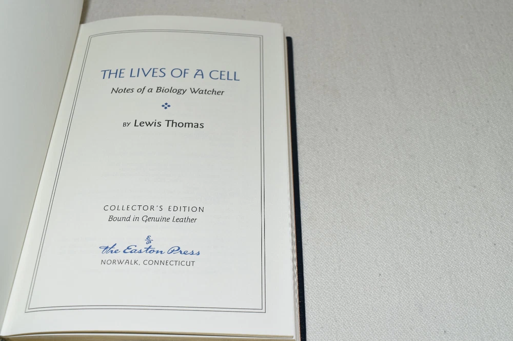 From the Easton Press Books that Changed the World Collection... The Lives of a Cell Notes of a Biology Watcher by Lewis Thomas Collector's Edition Copyright 1999 by The Easton Press Bound in Premium Full Leather This volume contains all of the classic Easton Press trimmings: Premium Leather Silk Moire Endleaves Distinctive Cover Design Hubbed Spine, Accented in Real 22KT Gold Satin Ribbon Page Marker Gilded Page Edges Long-lasting, High Quality Acid-neutral Paper Smyth-sewn Pages for Strength and Durability Beautiful Illustrations A very scarce title in any condition, this Easton Press First Limited Edition is in Fine condition. The front and back covers are both in terrific condition showing faint wear and the gilded page edges show hardly any wear (see pictures of all gilt sides). There are no markings, bookplates, or other signs of prior ownership in this book. This book was published by Easton Press and would be a beautiful addition to your Easton Press collection. Hopefully you can add this book to your collection and enjoy it in the years to come... Please Email Me With Any Questions You Might Have! Shipping Info: Buyer to Pay Shipping and Handling International Bidders Pay Extra Shipping Seller Not Responsible For Uninsured Items Lost or Damaged in Mail Forms of Payment Accepted: Paypal Good luck and happy bidding! Powered by eBay Turbo Lister The free listing tool. List your items fast and easy and manage your active items.