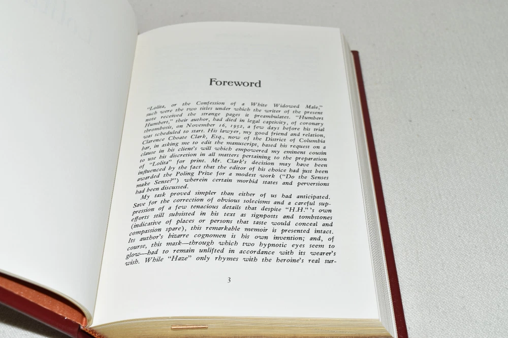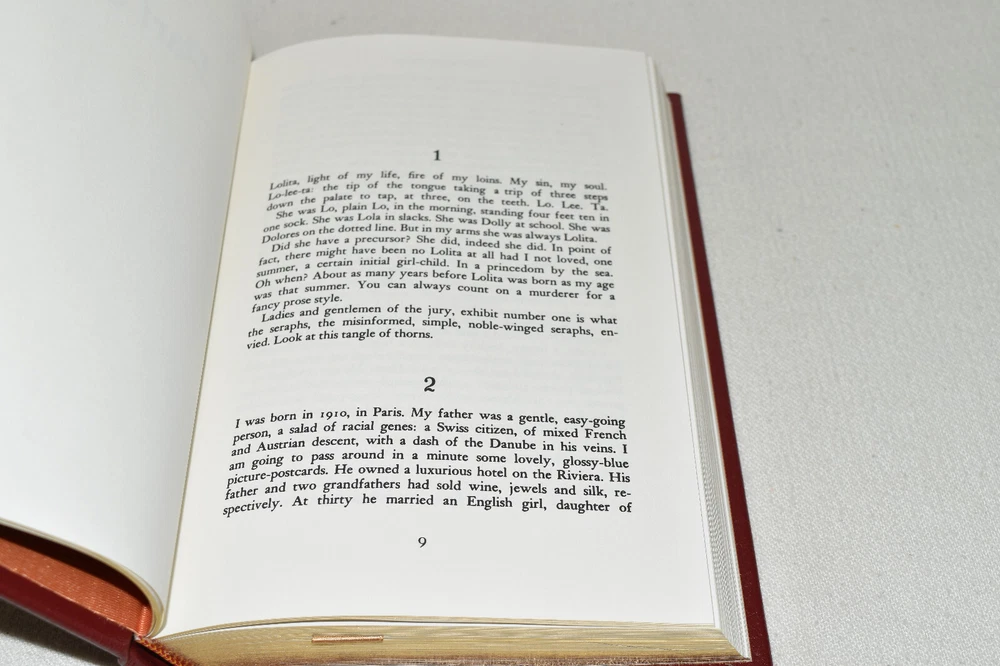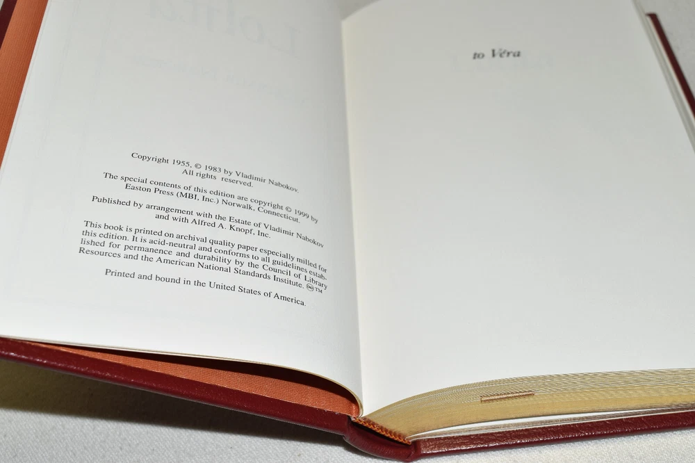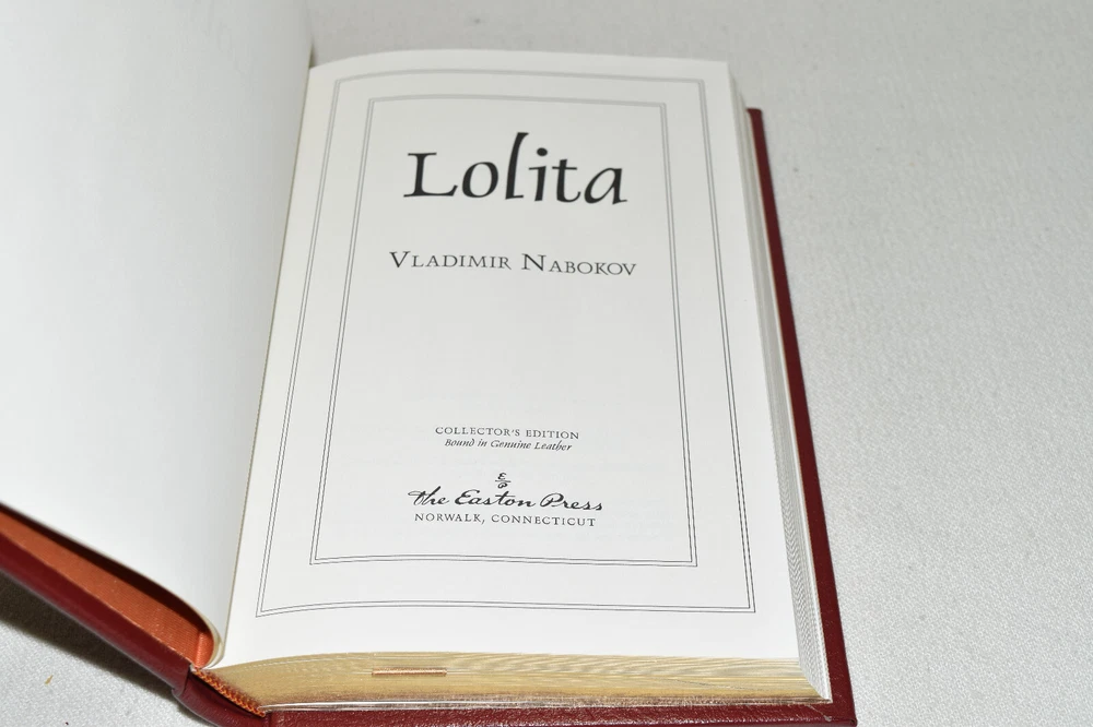 From the Easton Press Great Books of the 20th Century Collection... Lolita by Vladimir Nabokov Foreword by John Ray Copyright 1999 by The Easton Press Bound in Premium Full Leather This volume contains all of the classic Easton Press trimmings: Premium Leather Silk Moire Endleaves Distinctive Cover Design Hubbed Spine, Accented in Real 22KT Gold Satin Ribbon Page Marker Gilded Page Edges Long-lasting, High Quality Acid-neutral Paper Smyth-sewn Pages for Strength and Durability Beautiful Illustrations A very scarce title in any condition, this volume is in Fine condition. The front and back covers are both in terrific condition and the gilded page edges show a small scratch on the bottom edge and otherwise hardly any wear (see pictures of all edges). There are no markings, bookplates, or other signs of prior ownership in this book. This book is part of the Great Books of the 20th Century Collection published by Easton Press and would be a beautiful addition to your Easton Press collection. Overall, this copy is a grade collector's book. This book is very elusive in this superior condition, as only a limited number of them were ever published, so now is the time to act. Hopefully you can add this book to your collection and enjoy it in the years to come... Please Email Me With Any Questions You Might Have! Shipping Info: Buyer to Pay Shipping and Handling International Bidders Pay Extra Shipping Seller Not Responsible For Uninsured Items Lost or Damaged in Mail Forms of Payment Accepted: Paypal Good luck and happy bidding! Powered by eBay Turbo Lister The free listing tool. List your items fast and easy and manage your active items.
