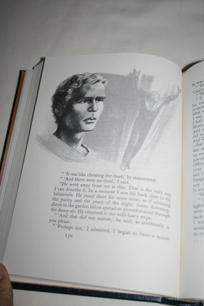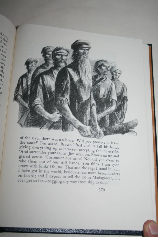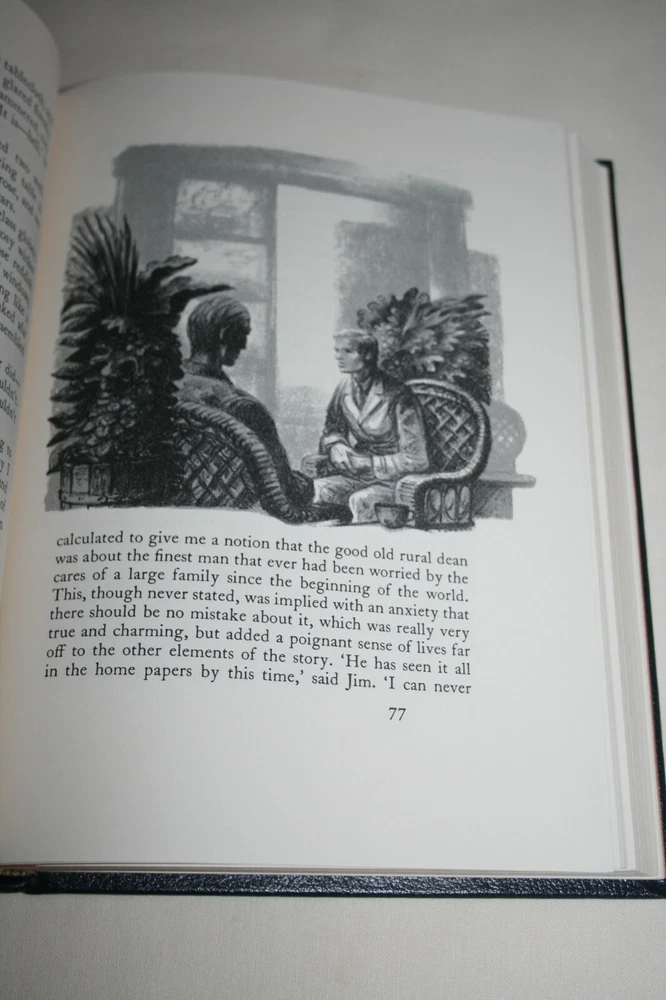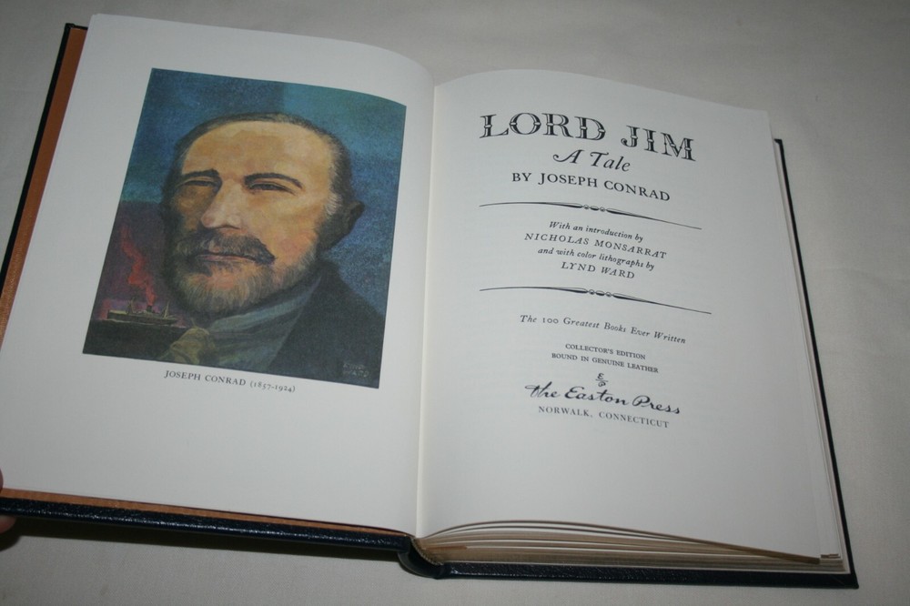 From the Easton Press 100 Greatest Books Ever Written Collection... Lord Jim by Joseph Conrad Illustrated by Lynd Ward Collector's Edition Copyright 1977 by The Easton Press Bound in Premium Full Leather This volume contains all of the classic Easton Press trimmings: Premium Leather Silk Moire Endleaves Distinctive Cover Design Hubbed Spine, Accented in Real 22KT Gold Satin Ribbon Page Marker Gilded Page Edges Long-lasting, High Quality Acid-neutral Paper Smyth-sewn Pages for Strength and Durability Beautiful Illustrations A very scarce title in any condition, this 1977 Easton Press First Edition is in Mint and Unread condition! The front and back covers are both in Perfect condition and the board edges show only very light wear. The gold gilded page edges show only the slightest of wear! There is no attached bookplate nor any other signs of previous ownership. This book is part of the 100 Greatest Books Ever Written Collection published by Easton Press and would be a beautiful addition to your Easton Press collection. Overall, this copy is a grade collector's book. This book is very elusive in this superior condition, as only a limited number of them were ever published, so now is the time to act. Hopefully you can add this book to your collection and enjoy it in the years to come... Please Email Me With Any Questions You Might Have! Shipping Info: Buyer to Pay Shipping and Handling International Bidders Pay Extra Shipping Seller Not Responsible For Uninsured Items Lost or Damaged in Mail Forms of Payment Accepted: Paypal Good luck and happy bidding! Powered by eBay Turbo Lister The free listing tool. List your items fast and easy and manage your active items.
