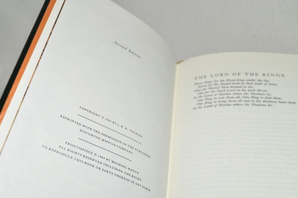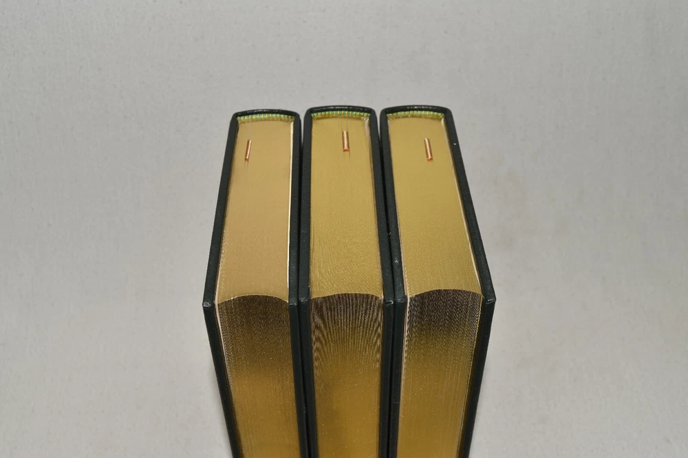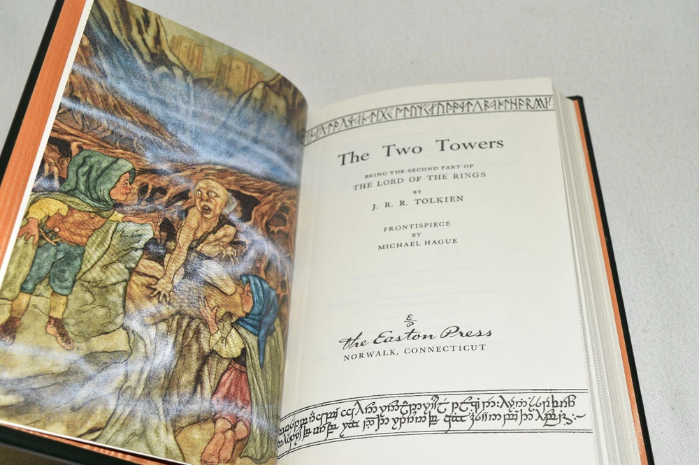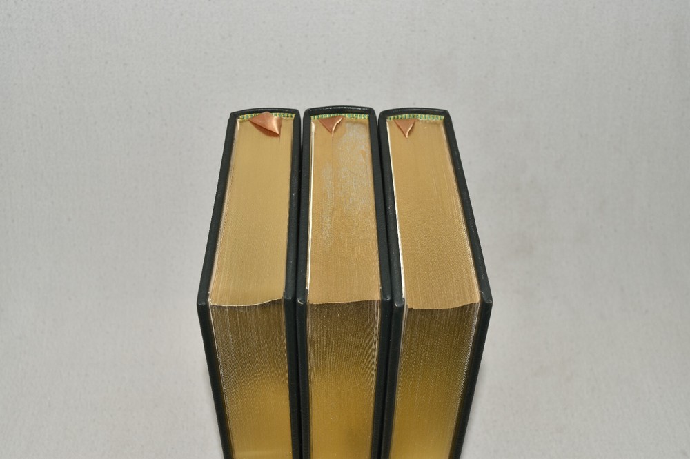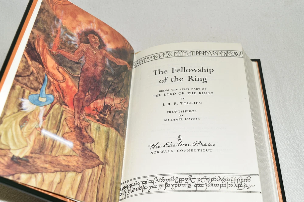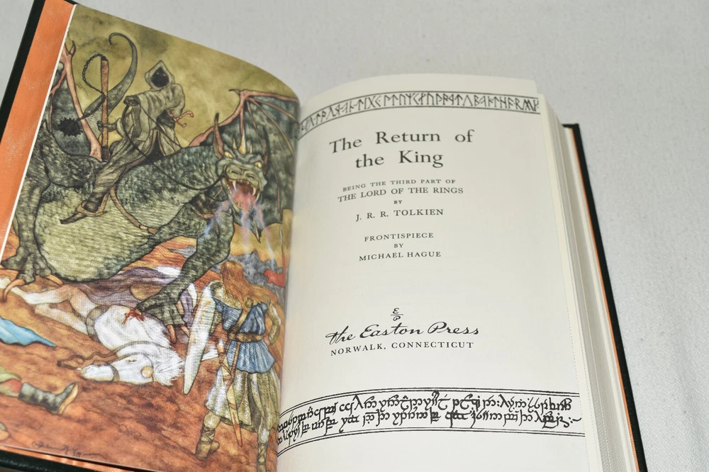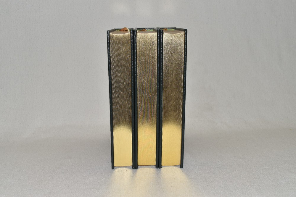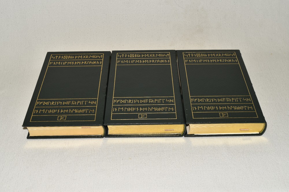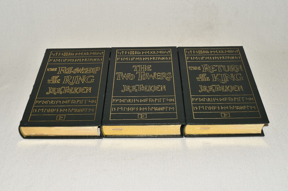 From the Easton Press Tolkien Collection... The Lord of the Rings The Fellowship of the Ring The Two Towers The Return of the King by J. R. R. Tolkien Introduction by James Gunn Artwork by Michael Hague Copyright 1984 by The Easton Press Early Printing!! Bound in Premium Full Leather This volume contains all of the classic Easton Press trimmings: Premium Leather Decorated Endleaves Distinctive Cover Design Hubbed Spine, Accented in Real 22KT Gold Satin Ribbon Page Marker Gilded Page Edges Long-lasting, High Quality Acid-neutral Paper Smyth-sewn Pages for Strength and Durability Beautiful Illustrations A very scarce set in any condition, these volumes are in Fine condition. The front and back covers are both in terrific condition and the gilded page edges show minor wear on the top edge of Two Towers (see pictures of all edges). There are no markings, bookplates, or other markings in these books. This set is part of the Tolkien Collection published by Easton Press. Each book comes complete with a fold-out map. It would be a beautiful addition to your Easton Press collection. Hopefully you can add this set to your collection and enjoy it in the years to come... Please Email Me With Any Questions You Might Have! Shipping Info: Buyer to Pay Shipping and Handling International Bidders Pay Extra Shipping Seller Not Responsible For Uninsured Items Lost or Damaged in Mail Forms of Payment Accepted: Paypal Good luck and happy bidding! Powered by eBay Turbo Lister The free listing tool. List your items fast and easy and manage your active items.