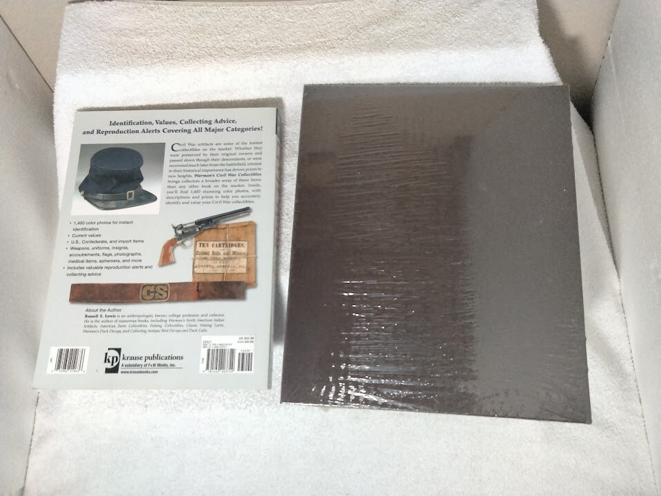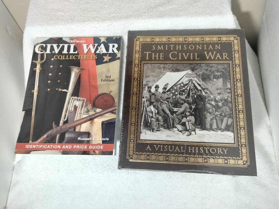 Easton Press Leather Bound Smithsonian "The Civil War - A Visual History" in original shrink wrap... Plus dive into the rich history of Civil War artifacts with "Warman's Civil War Collectibles Identification and Price Guide" by Russell E. Lewis - 3rd Edition from 2009 with vivid colored pictures. This comprehensive resource, published in 2010 by Krause Publications, offers 400 pages of in-depth coverage on military antiques and collectibles, with a focus on items from the iconic period of 1861-65. The guide provides an accessible way for collectors and enthusiasts to identify and value their finds, with detailed descriptions and pricing information. Its softcover wraps protect a wealth of knowledge in a convenient 8.25 x 10.88 inch paperback format, making it an essential addition to any Civil War aficionado's library. Wrapped carefully with very quick 1 business day out my door shipping. Several Leather Bound Easton Press Books for sale on my sellers page along with other collectibles.