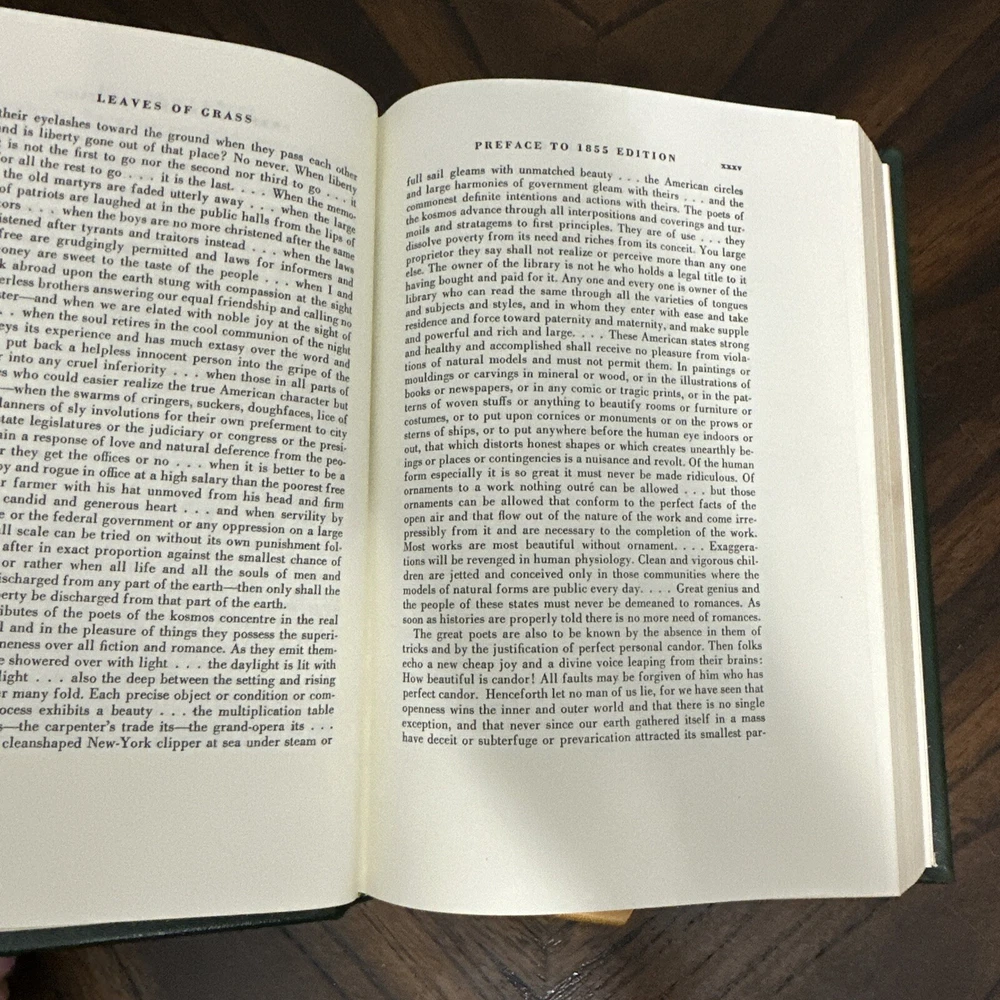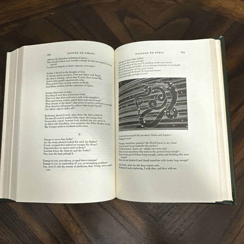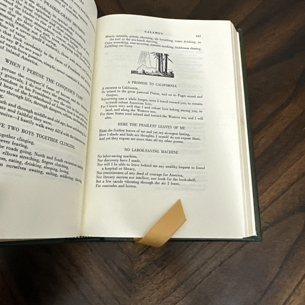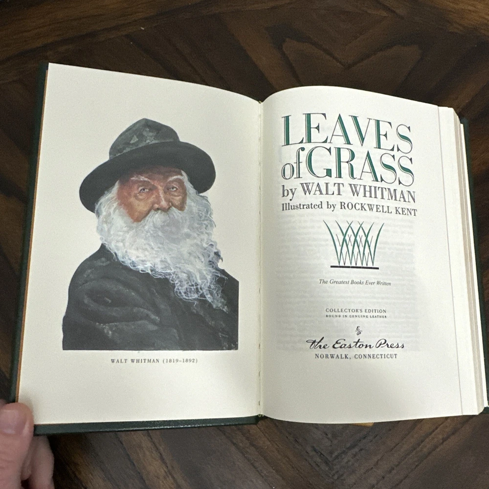 Easton Press Leaves Of Grass By Walt Whitman Leather Bound Collector’s Edition. Book is in great condition, like new with minimal wear with light bends to the hard back corners, as shown in the photos. Free of rips and tears. Book measures 9 3/8” in height, 6 3/8” in width, and 1 1/2” in depth.