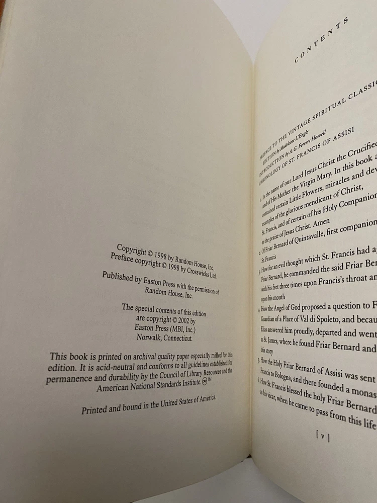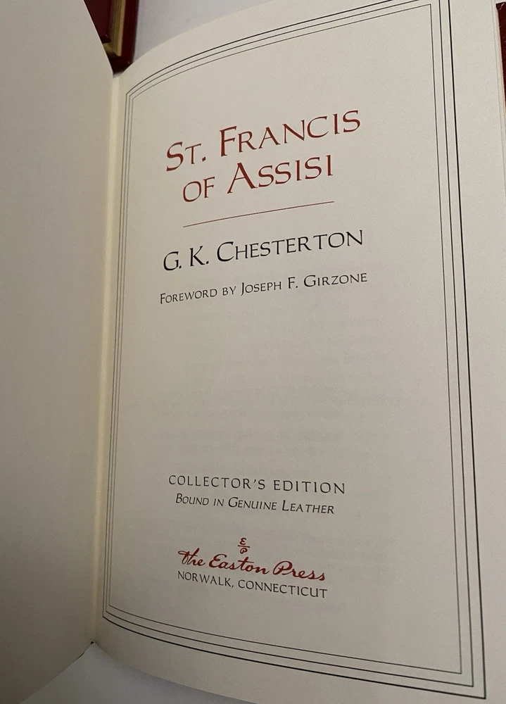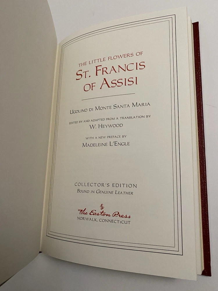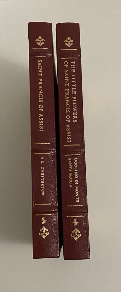 Easton Press leather bound Saint Francis of Assisi by G.K. Chesterton The Little Flowers of Saint Francis of Assisi - Ugolino Di Monte Santa Maria Great condition- no bookplate, tight binding, gold edges in good condition. Please look closely at photos as they are considered part of the description. Please be aware to expect a slight variation in color due to lighting and your device screen settings. Wrapped in acid free paper and bubble wrap for shipment. From a clean and smoke free home.