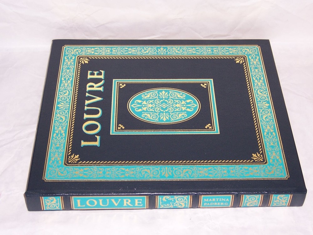 Heirloom Edition Easton Press Louvre by Martina Padberg Gilt design on the front, measured by 10 3/4" x 12 1/2" out-of-print, do not miss out this good deal Copyright by The Easton Press hubbed spine, bound in premium full leathers distinctive cover design, beautiful illustrations handsome, readable typefaces, permanent satin ribbon page marker elegant gilded page edges, endsheets of rich moire fabric thread-sewn pages for durability and strength, long-lasting high quality, acid-neutral paper CONDITION DESCRIPTION: The book is in like new and unread condition: binding is tight, clean inside, and solid hardcover. It will make a great addition to any library. SHIPPING / HANDLING: Book(s) will be handled/packed very safely, and shipped via USPS media mail with delivery confirmation.