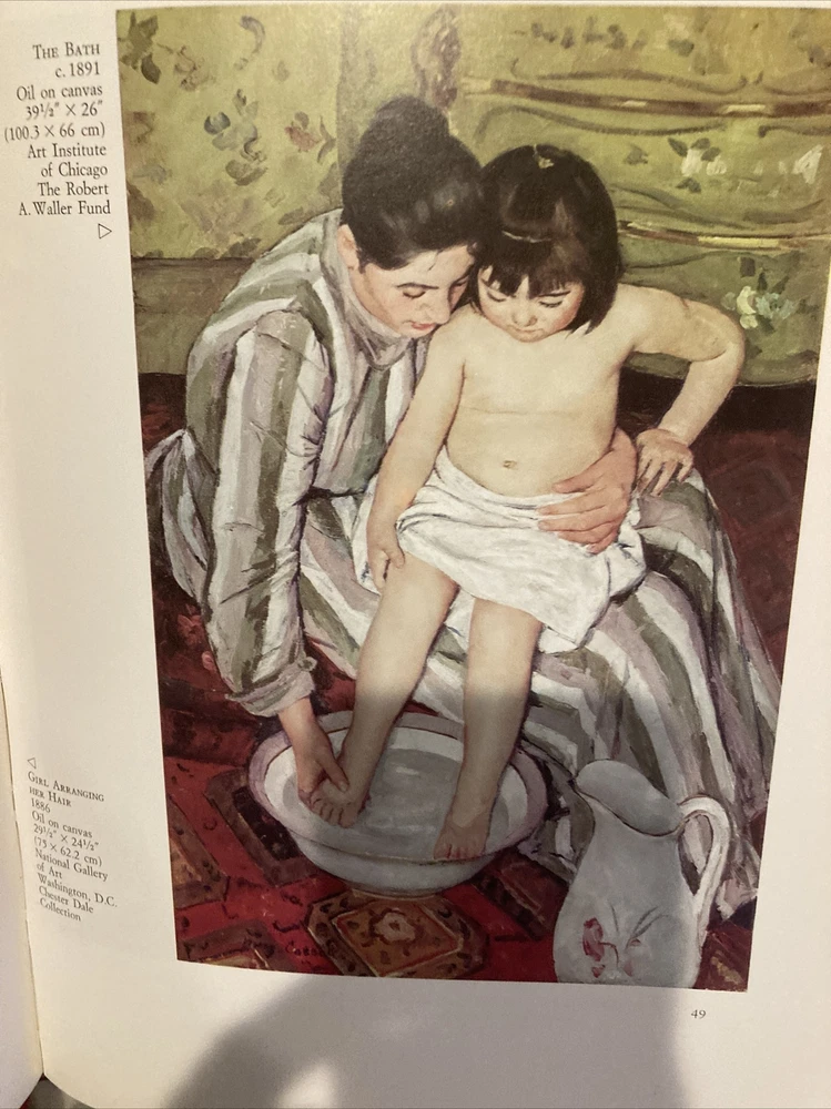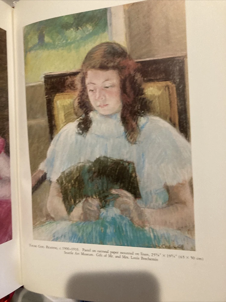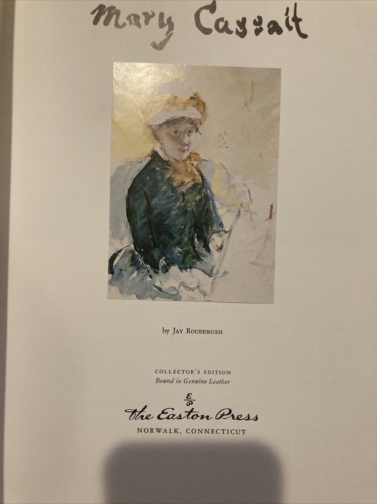 Easton Press leather edition of Jay Roudebush's "Mary Cassatt," a COLLECTOR'S edition, Frontispiece Self-Portrait of Cassatt, Printed in Italy, published in 1982. Bound in burgundy leather, the book has paper end leaves, satin book marker, Symth-sewn binding, acid-free paper, gold gilding on three edges---in near FINE condition. Mary Cassatt, who lived from 1844---1926, was born and reared in Pennsylvania, but lived most of her adult life in Paris. She was born into an upper-middle-class family, one of seven children. She grew up in an environment that viewed travel as integral to education; she spent five years in Europe and visited many of the capitals, including London, Paris, and Berlin. Though her family objected to her becoming a professional artist, Cassatt began studying painting at the Pennsylvania Academy of Fine Arts in Philadelphia at the early age of 15. Part of her parents' concern may have been Cassatt's exposure to feminist ideas and the bohemian behavior of some of the male students. As such, Cassatt and her network of friends were lifelong advocates of equal rights for the sexes. Cassatt moved to Paris in 1866 with her mother and family friends acting as chaperones. Since women could not yet attend the Ecole des Beaux-Arts, Cassatt applied to study privately with masters from the school. In Paris i n 1866, she studied with Charles Chaplin and Jean-Leon Gerome and copied masterworks in the LOUVRE. In 1868 her first painting was accepted for the Salon. She traveled to ITALY and spent eight months in Parma, copying painting by Correggio and studying printmaking with Carlo Raimondi. From 1872-74, she painted in Seville, Antwerp, Paris, and Rome, submitting works to the Salon and to exhibitions in the U.S. She was famous for her women and children paintings. In 1877, Cassatt was invited by DEGAS to be one of the "independents," soon to be known as the Impressionists. In 1908-09 Cassatt made her last trip to the U.S. 95 pages, including a Biographical Outline, a Selected Bibliography and an Index. I offer Combined Shipping.