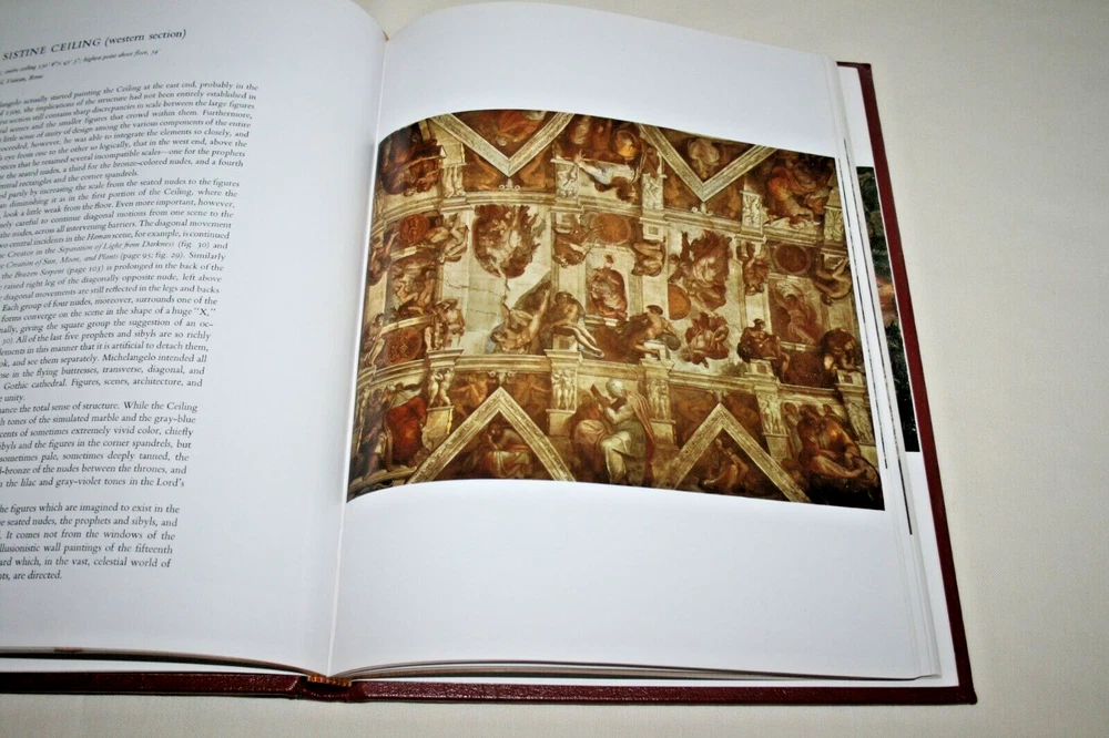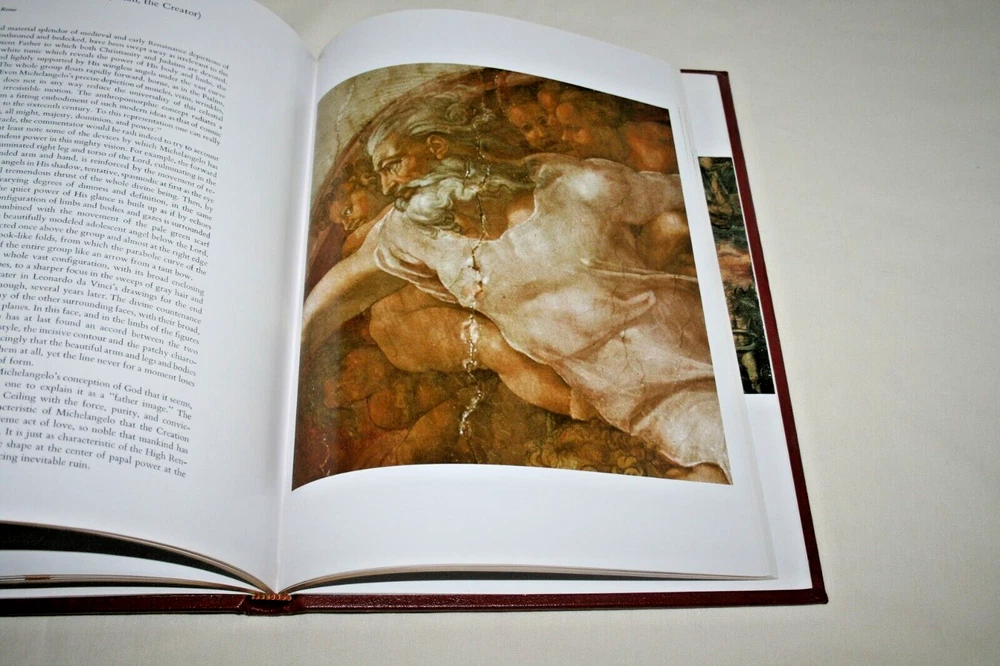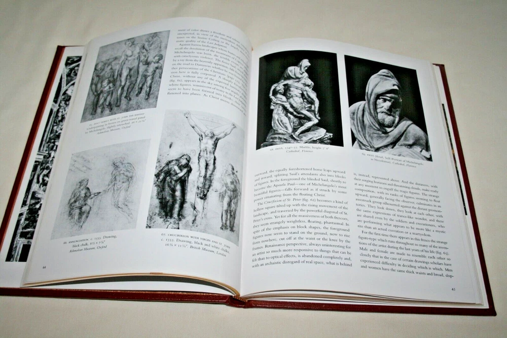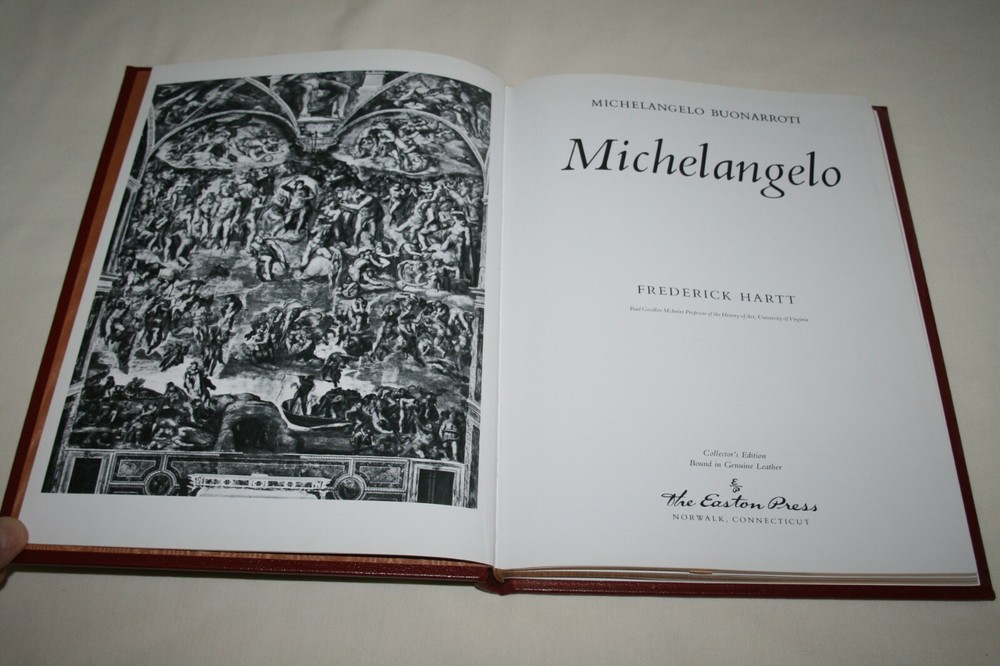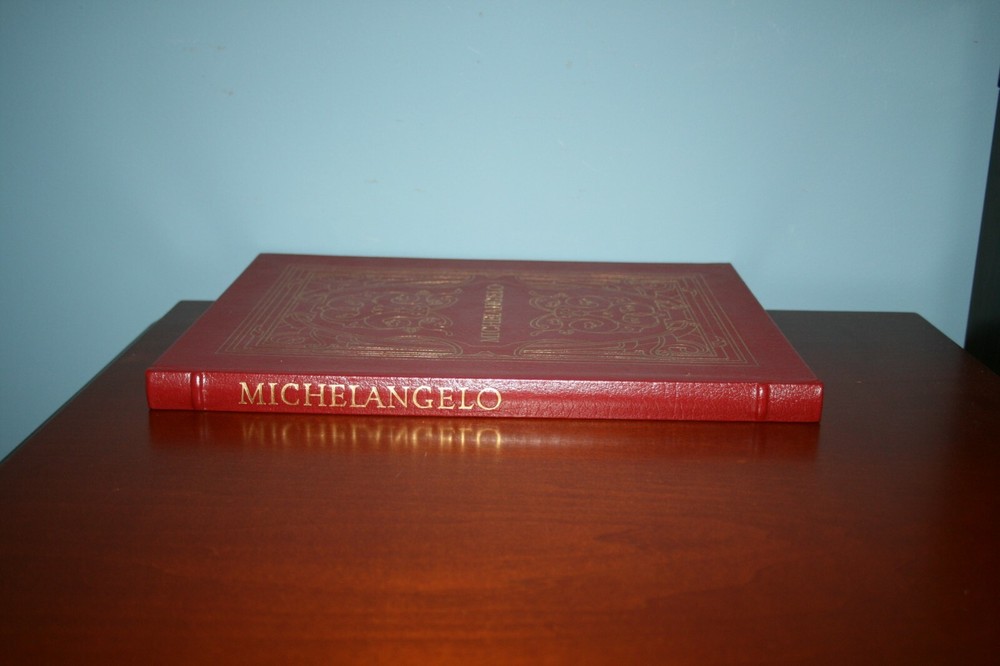 From the Easton Press Library... MICHELANGELO Text by Frederick Hartt Contains 40 Colorplates by Michelangelo Copyright 1984 by The Easton Press Collector's Edition Bound in Premium Full Leather This volume contains all of the classic Easton Press trimmings: Premium Leather Decorated Endleaves Distinctive Cover Design Hubbed Spine, Accented in Real 22KT Gold Satin Ribbon Page Marker Gilded Page Edges Long-lasting, High Quality Acid-neutral Paper Smyth-sewn Pages for Strength and Durability Beautiful Illustrations A very scarce title in any condition, this massive volume (12 1/4" by 9 1/4") is in Fine and Unread condition. The front and back covers are both in near Perfect condition and the gilded page edges show no wear at all (see pictures). This book contains numerous illustrations by the Artist. This Collector's Edition is published by Easton Press and comes with a blank attached bookplate. It would be a beautiful addition to your Easton Press collection. Overall, this copy is a grade collector's book. This book is very elusive in this superior condition, as only a limited number of them were ever published, so now is the time to act. Hopefully you can add this book to your collection and enjoy it in the years to come... Please Email Me With Any Questions You Might Have! Shipping Info: Buyer to Pay Shipping & Handling International Bidders Pay Extra Shipping Good luck and happy bidding!