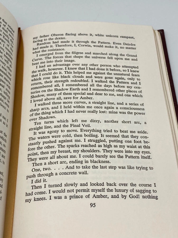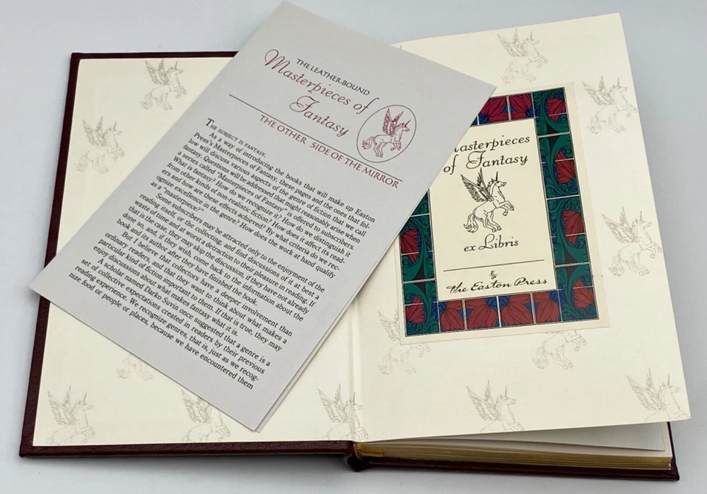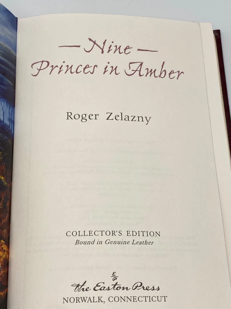 MAKES THE PERFECT GIFT FOR ANY FAN OF FANTASY ** PLEASE READ: Mahalo for taking the time to look at our listing. We truly appreciate it. We always do our BEST to give you the most accurate description of these beautiful books. If, however, you have any SPECIFIC questions about the SIZE of the book, NUMBER of pages, TYPE of leather, SMELL or FEEL of the book, PLEASE email us through EBay’s mail system BEFORE you bid, and we will be HAPPY to give you more information. We want you to be completely happy with your purchase and keep you as our customers for years to come!** DESCRIPTION: Easton Press full-leather binding, part of the OUT OF PRINT MASTERPIECES OF FANTASY. THIS IS A SCARCE VINTAGE HEIRLOOM EASTON WITH LAVISH GILT IMPRESSIONS TO THE BOARDS AND SPINE with A BEAUTIFUL FULL COLOR FRONTISPIECE . IT IS ONE OF THE MOST HIGHLY PRIZED EDITIONS OF THIS GREAT CLASSIC OF FANTASY. ORIGINAL COLLECTOR’S NOTES ARE INCLUDED. 🍍 NOT INCLUDED… 😀 ABOUT THE BOOK: In Nine Princes in Amber , Amber, the one real world, wherein all others, including our own Earth, are but Shadows. Amber burns in Corwin's blood. Exiled on Shadow Earth for centuries, the prince is about to return to Amber to make a mad and desperate rush upon the throne. From Arden to the blood-slippery Stairway into the Sea, the air is electrified with the powers of Eric, Random, Bleys, Caine, and all the princes of Amber whom Corwin must overcome. Yet, his savage path is blocked and guarded by eerie structures beyond imagining; impossible realities forged by demonic assassins and staggering horrors to challenge the might of Corwin's superhuman fury.' to 'Awakening in an Earth hospital unable to remember who he is or where he came from, Corwin is amazed to learn that he is one of the sons of Oberon, King of Amber, and is the rightful successor to the crown in a parallel world. CONDITION: Book is in LIKE NEW condition for its age with only a couple of negligible faint rubs to the gilt endpages, barely worth noting, and the original blank attached bookplate, ready for your personalization (SEE PICS FOR FURTHER DETAILS). NO WRITING FROM PREVIOUS OWNER, ETC. It is a BEAUTIFUL EDITION. SHIPPING: FREE to U.S. ADDRESSES ONLY. INTERNATIONAL $ based on location. WE SHIP PRIORITY MAIL & PACK VERY WELL. Please check out our other listings of Easton Press, Franklin Library, Limited Editions Club, First Edition Library, Folio Society, International Collectors Library and Heritage Press editions. WE DO COMBINE SHIPPING IF YOU PURCHASE MORE THAN ONE COPY. Mahalo for looking at our listings! By bidding/purchasing this item, you are helping a very grateful family who sends you our WARMEST ALOHA & MAHALO!