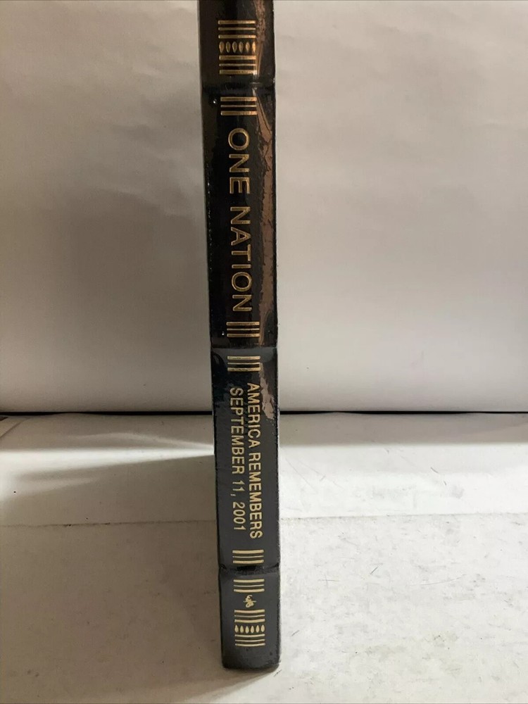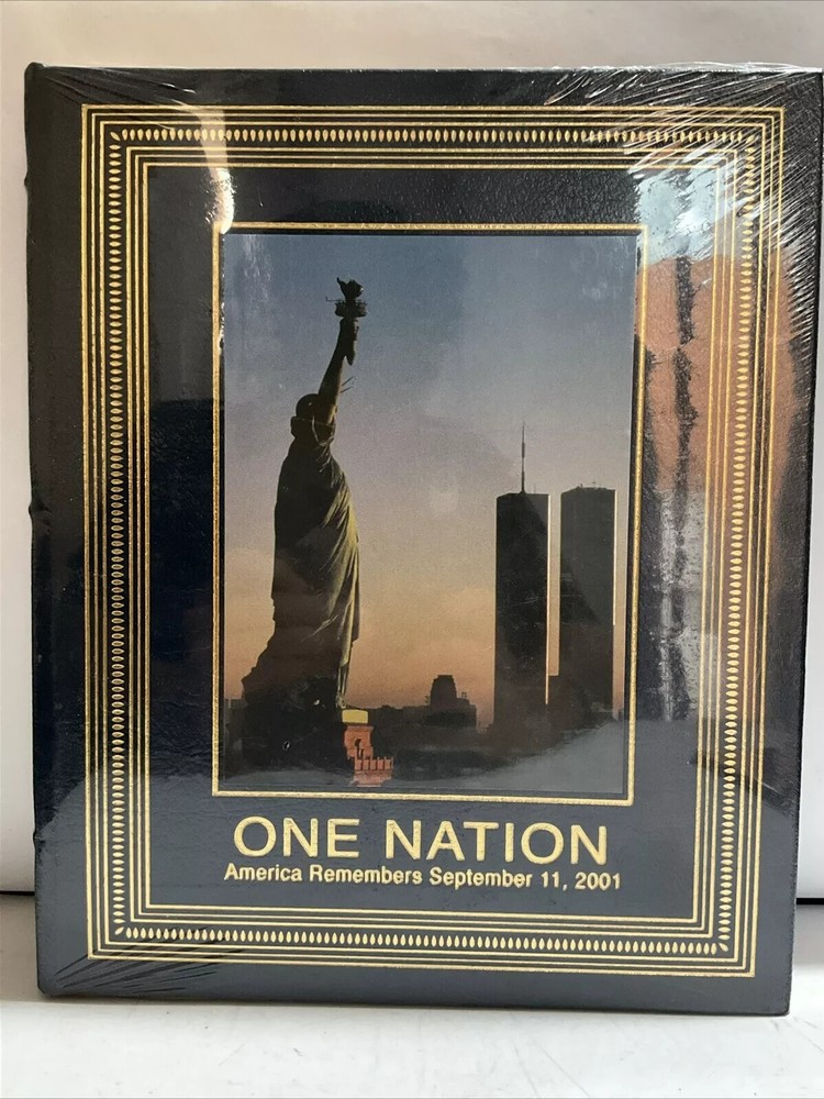 This is an all brand new and unopened book of the Easton Press that features the title One Nation. Describing the beginning of the Original World Trade Center and the tradegy events that occured on a Tuesday morning on September 11, 2001. A must have for historical piece and for hope in the future. Buy responsibly and good luck.