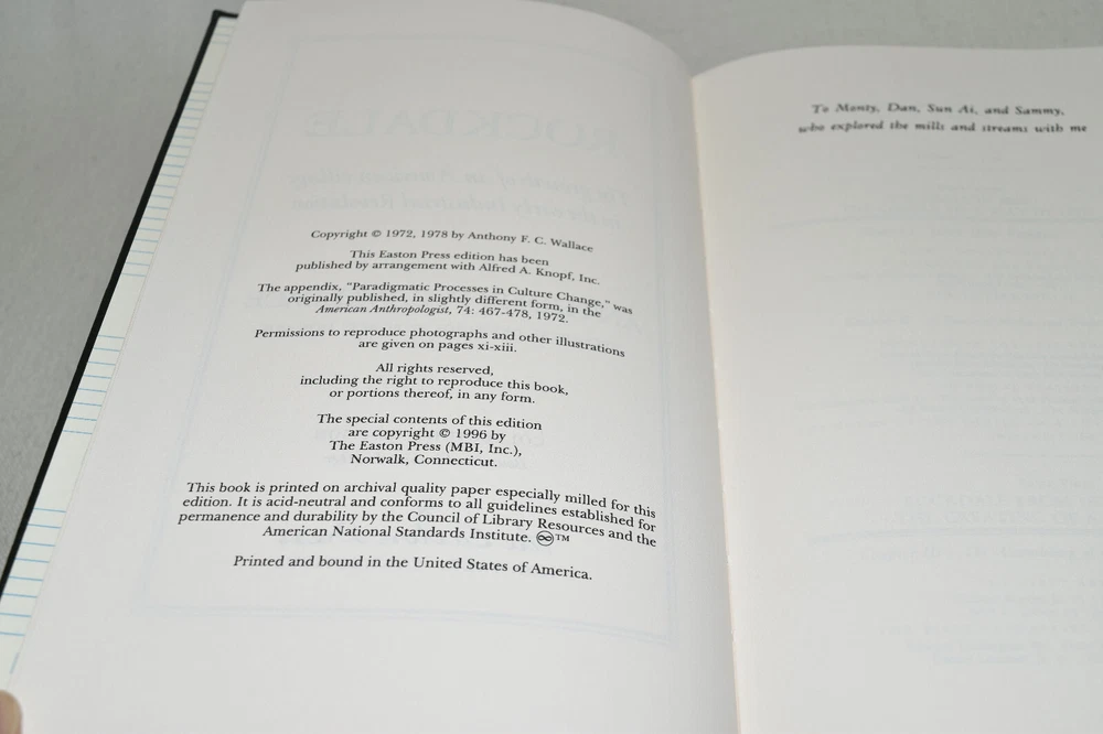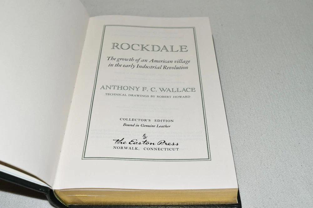 From the Easton Press Masterpieces of American History Collection... Rockdale The Growth of an American Village in the Early Industrial Revolution by Anthony Wallace Drawings by Robert Howard Copyright 1996 by The Easton Press Bound in Premium Full Leather This volume contains all of the classic Easton Press trimmings: Premium Leather Decorated Endleaves Distinctive Cover Design Hubbed Spine, Accented in Real 22KT Gold Satin Ribbon Page Marker Gilded Page Edges Long-lasting, High Quality Acid-neutral Paper Smyth-sewn Pages for Strength and Durability Beautiful Illustrations A very scarce title in any condition, this volume is in Near Fine - Fine condition. The front and back covers are both in terrific condition and the gilded page edges show minor wear (see pictures of all edges). There are no markings, bookplates, or other signs of prior ownership in this book. This book is part of the Masterpieces of American History Collection published by Easton Press and would be a beautiful addition to your Easton Press collection. Hopefully you can add this book to your collection and enjoy it in the years to come... Please Email Me With Any Questions You Might Have! Shipping Info: Buyer to Pay Shipping and Handling International Bidders Pay Extra Shipping Seller Not Responsible For Uninsured Items Lost or Damaged in Mail Forms of Payment Accepted: Paypal Good luck and happy bidding! Powered by eBay Turbo Lister The free listing tool. List your items fast and easy and manage your active items.
