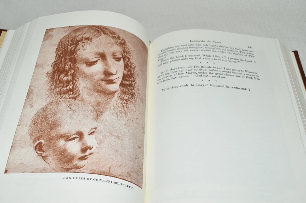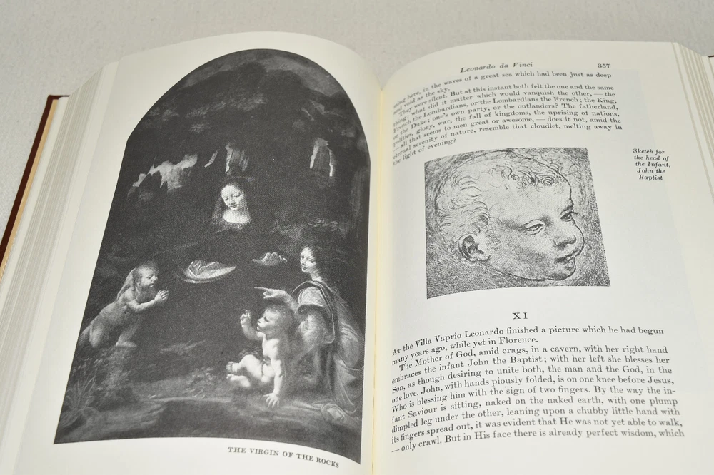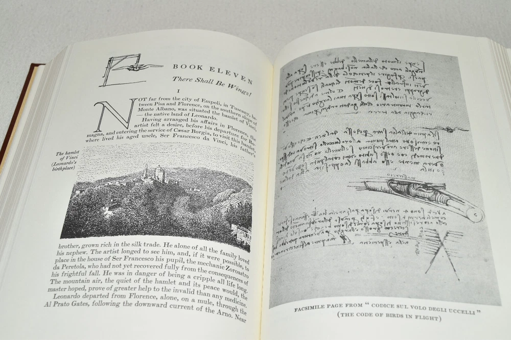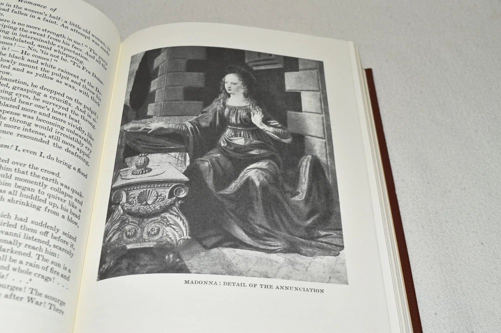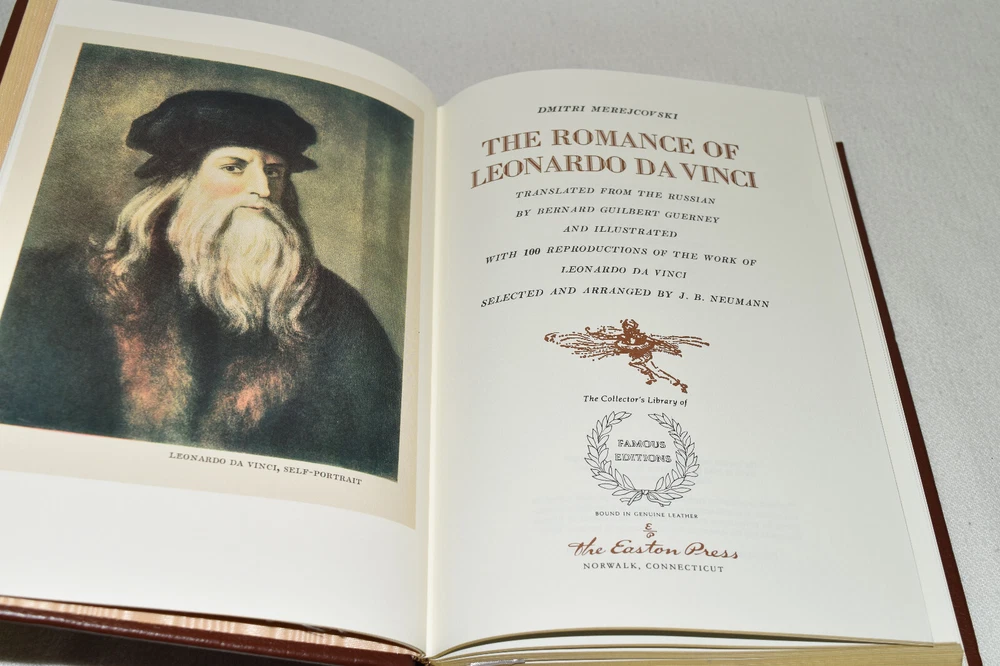 From the Easton Press Library of Famous Editions Collection... The Romance of Leonardo da Vinci by Dmitri Merejcovski Translated by Bernard Guerney Illustrated by Leonardo da Vinci Copyright 1998 by The Easton Press Bound in Premium Full Leather This volume contains all of the classic Easton Press trimmings: Premium Leather Silk Moire Endleaves Distinctive Cover Design Hubbed Spine, Accented in Real 22KT Gold Satin Ribbon Page Marker Gilded Page Edges Long-lasting, High Quality Acid-neutral Paper Smyth-sewn Pages for Strength and Durability Beautiful Illustrations A very scarce title in any condition, this copy is in Fine condition. The front and back covers are both in near perfect condition and the gilded page edges show hardly any wear (see pictures of all sides). There is light residue on the second page. This book is part of the Library of Famous Editions Collection published by Easton Press. It would be a beautiful addition to your Easton Press collection. Overall, this copy is a grade collector's book. This book is very elusive in this superior condition, as only a limited number of them were ever published, so now is the time to act. Hopefully you can add this book to your collection and enjoy it in the years to come... Please Email Me With Any Questions You Might Have! Shipping Info: Buyer to Pay Shipping and Handling International Bidders Pay Extra Shipping Good luck and happy bidding!
