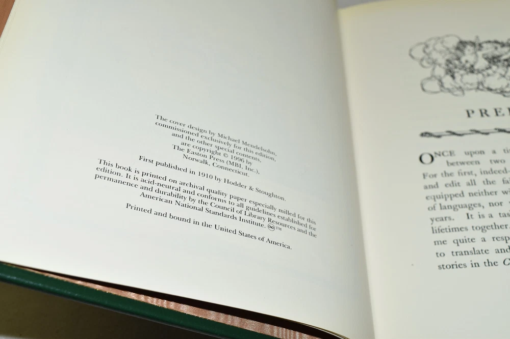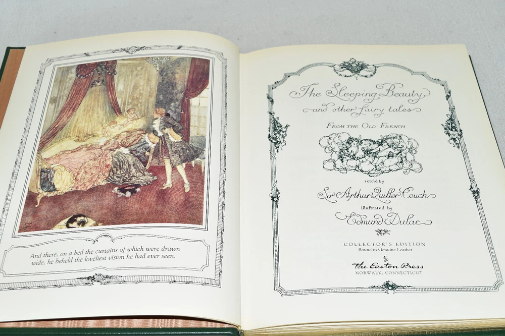 This Easton Press edition is absolutely stunning! The full leather binding feels luxurious, and the gold accents make it a true collector's piece. Edmund Dulac’s illustrations are breathtaking, bringing these classic fairy tales to life. The gilded edges and ribbon marker add such elegance—it’s like owning a piece of art. A rare find for book lovers and a must-have for any fairy tale enthusiast. Feels like a treasure every time I hold it!