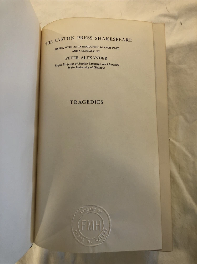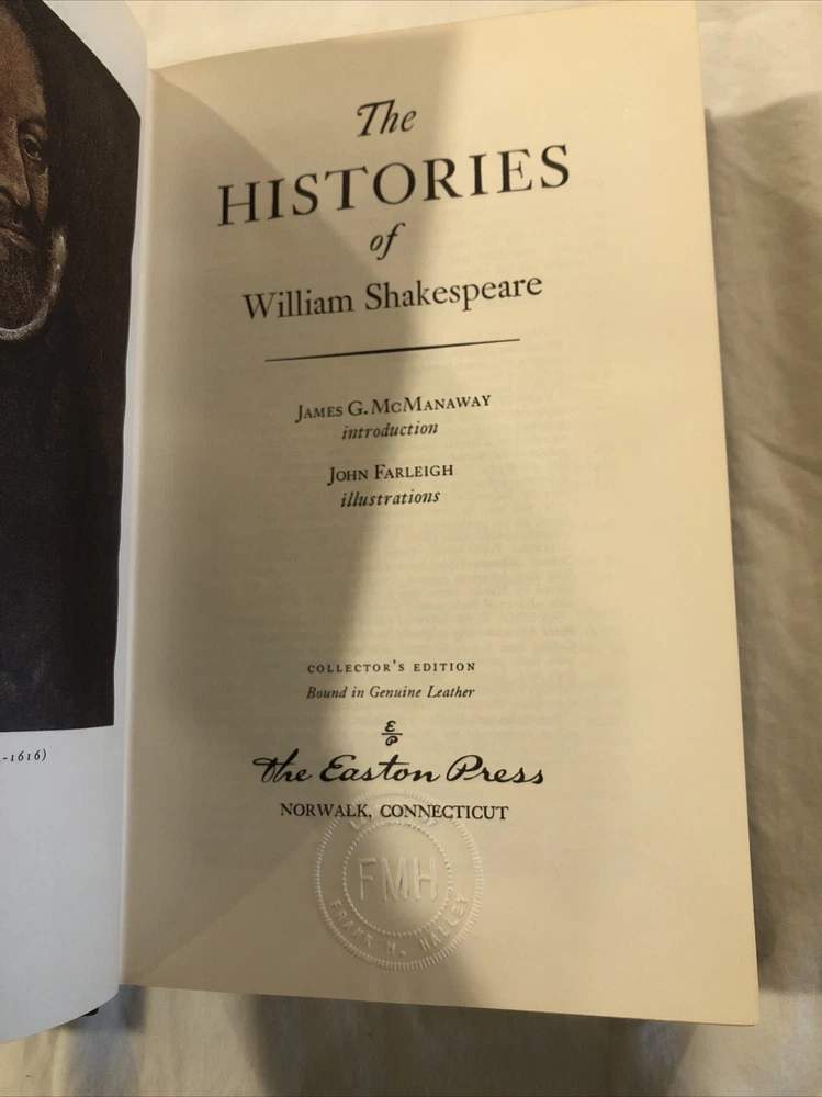 Easton Press Shakespeare 3 volume set The Histories Comedies Tragedies Leather. COLLECTOR’S EDITION. Fine leather books published by The Easton Press in 1980. The books are in good condition, but do have slight scuffs and scratches on 2/3 covers, and the gold gilt on all are scuffed in some places, stamped. SEE PICTURES. Shipping via USPS. 30-Day Returns Accepted.