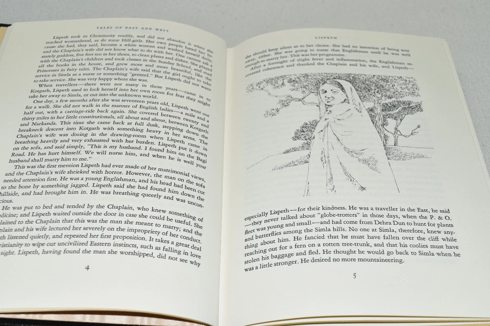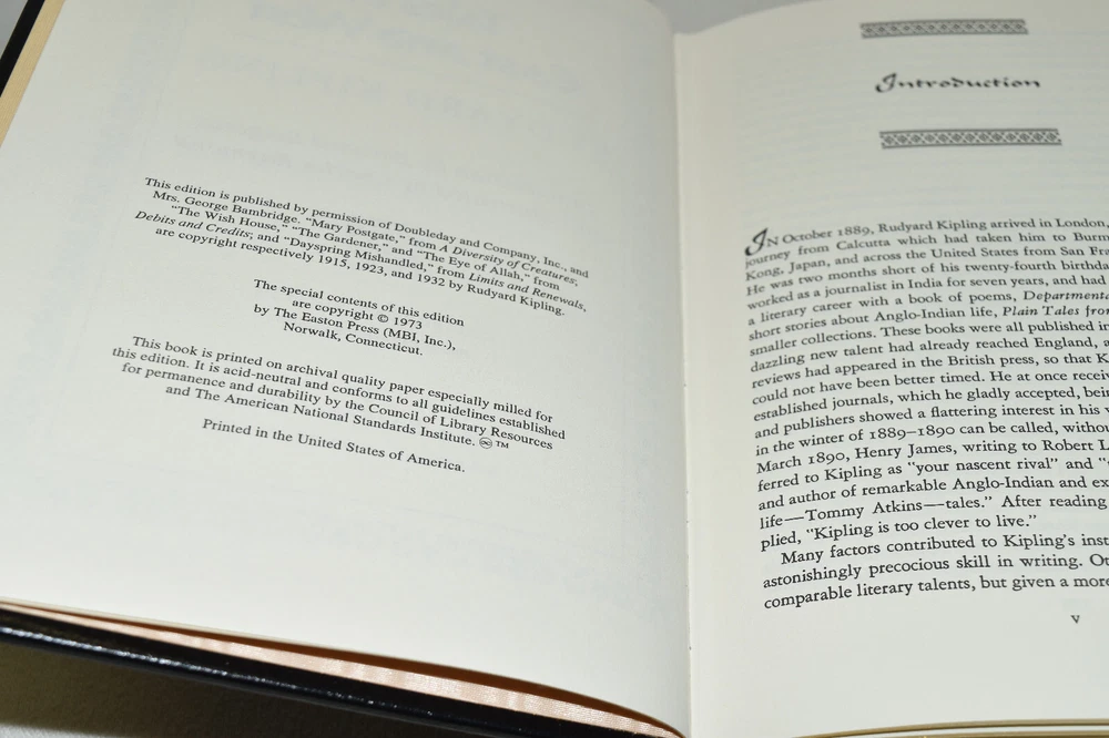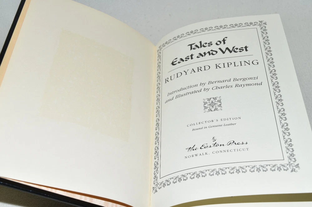 From the Easton Press Collection... Tales from the East and West by Rudyard Kipling Illustrated by Charles Raymond Collector's Edition Copyright 1992 by The Easton Press Bound in Premium Full Leather This volume contains all of the classic Easton Press trimmings: Premium Leather Silk Moire Endleaves Distinctive Cover Design Hubbed Spine, Accented in Real 22KT Gold Satin Ribbon Page Marker Gilded Page Edges Long-lasting, High Quality Acid-neutral Paper Smyth-sewn Pages for Strength and Durability Beautiful Illustrations A very scarce title in any condition, this Easton Press Limited Edition is in Fine condition. The front and back covers are both in terrific condition and the gilded page edges show only minor wear (see pictures of all gilt sides). There is faint residue on the second page. This book was published by Easton Press and would be a beautiful addition to your Easton Press collection. Overall, this copy is a grade collector's book. This book is very elusive in this superior condition, as only a limited number of them were ever published, so now is the time to act. Hopefully you can add this book to your collection and enjoy it in the years to come... Please Email Me With Any Questions You Might Have! Shipping Info: Buyer to Pay Shipping and Handling International Bidders Pay Extra Shipping Seller Not Responsible For Uninsured Items Lost or Damaged in Mail Forms of Payment Accepted: Paypal Good luck and happy bidding! Powered by eBay Turbo Lister The free listing tool. List your items fast and easy and manage your active items.