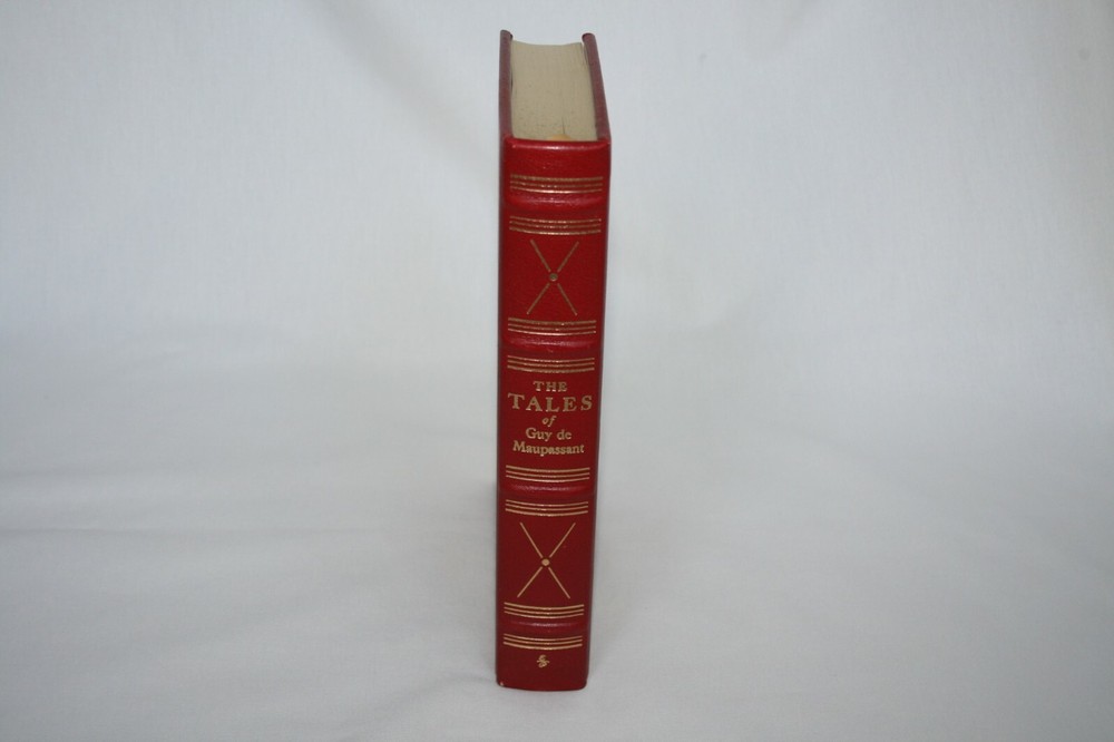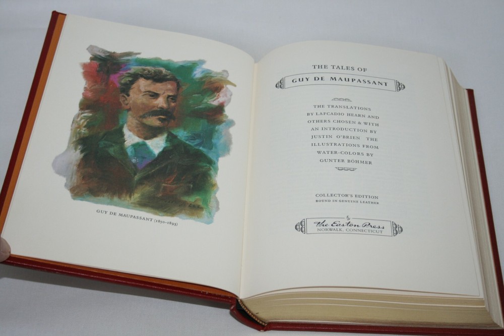 From the Easton Press 100 Greatest Books Ever Written Collection... The Tales of Guy de Maupassant Illustrated by Gunter Bohmer Copyright 1977 by The Easton Press Bound in Premium Full Leather This volume contains all of the classic Easton Press trimmings: Premium Leather Silk Moire Endleaves Distinctive Cover Design Hubbed Spine, Accented in Real 22KT Gold Satin Ribbon Page Marker Gilded Page Edges Long-lasting, High Quality Acid-neutral Paper Smyth-sewn Pages for Strength and Durability A very scarce title in any condition, this volume is in Absolute Mint and Unread condition! The front and back covers are both in near Perfect condition and the gilded page edges show no wear at all! This book is part of the 100 Greatest Books Ever Written Collection published by Easton Press. There are no attached bookplates nor any other signs of previous ownership. It would be a beautiful addition to your Easton Press collection. Overall, this copy is a grade collector's book. This book is very elusive in this superior condition, as only a limited number of them were ever published, so now is the time to act. Hopefully you can add this book to your collection and enjoy it in the years to come... Please Email Me With Any Questions You Might Have! Shipping Info: Buyer to Pay Shipping and Handling International Bidders Pay Extra Shipping Good luck and happy bidding!