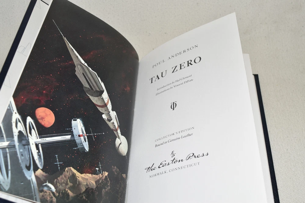 This Easton Press edition of *Tau Zero* is a stunning collector's piece! The full leather binding feels luxurious, and the gold accents add elegance. The illustrations are gorgeous, and the durable Smyth-sewn pages ensure it lasts. A must-have for sci-fi fans—absolutely worth it!
