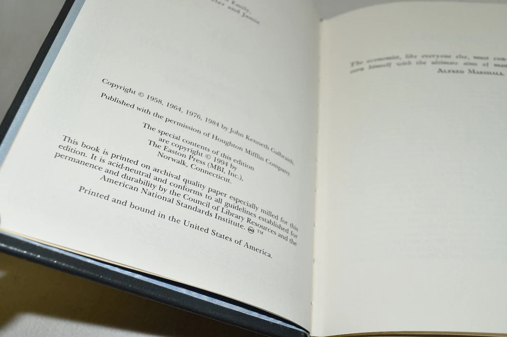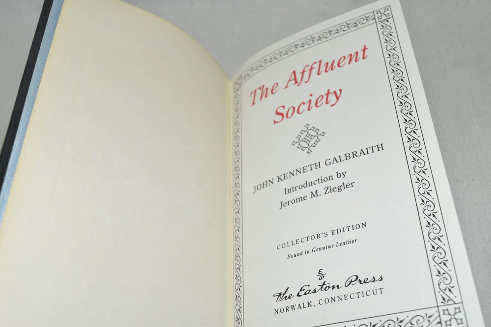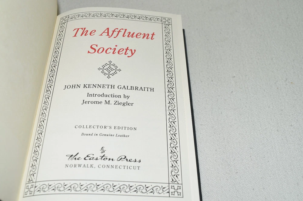 From the Easton Press Books that Changed the World Collection... The Affluent Society by John Kenneth Galbraith Introduction by Jerome Ziegler Collector's Edition Copyright 1994 by The Easton Press Bound in Premium Full Leather This volume contains all of the classic Easton Press trimmings: Premium Leather Silk Moire Endleaves Distinctive Cover Design Hubbed Spine, Accented in Real 22KT Gold Satin Ribbon Page Marker Gilded Page Edges Long-lasting, High Quality Acid-neutral Paper Smyth-sewn Pages for Strength and Durability Beautiful Illustrations A very scarce title in any condition, this Easton Press First Limited Edition is in Fine condition. The front and back covers are both in terrific condition and the gilded page edges show hardly any wear (see pictures of all gilt sides). There is a minor residue on the second page. This book was published by Easton Press and would be a beautiful addition to your Easton Press collection. Hopefully you can add this book to your collection and enjoy it in the years to come... Please Email Me With Any Questions You Might Have! Shipping Info: Buyer to Pay Shipping and Handling International Bidders Pay Extra Shipping Seller Not Responsible For Uninsured Items Lost or Damaged in Mail Forms of Payment Accepted: Paypal Good luck and happy bidding! Powered by eBay Turbo Lister The free listing tool. List your items fast and easy and manage your active items.