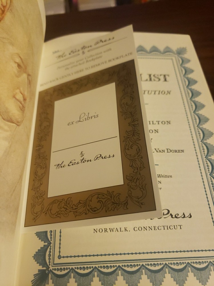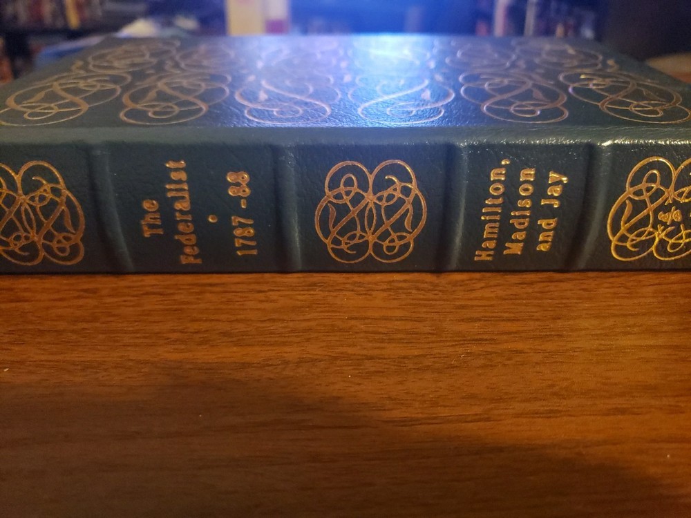 Clean and unmarked pages. With new bookplate Good solid binding, ships fast with care. The product is a luxury edition of "The Federalist: American State Papers" by authors Hamilton, Madison, and Jay, published by Easton Press in 1979. This original print features a leather binding and illustrations by Bruce Rogers, making it a valuable addition to any collection of historical and government-related literature. The book focuses on the Constitution of the United States and is part of Easton Press's 100 Greatest series, making it a sought-after item for those interested in the founding fathers of North America.