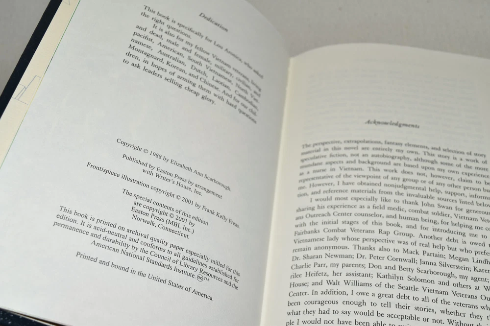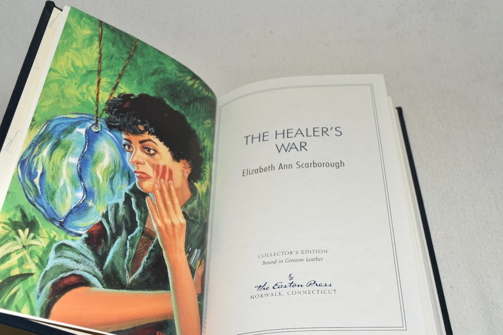 From the Easton Press Masterpieces of Science Fiction Collection... The Healer's War by Elizabeth Ann Scarborough Copyright 2001 by The Easton Press Bound in Premium Full Leather This volume contains all of the classic Easton Press trimmings: Premium Leather Decorated Endleaves Distinctive Cover Design Hubbed Spine, Accented in Real 22KT Gold Satin Ribbon Page Marker Gilded Page Edges Long-lasting, High Quality Acid-neutral Paper Smyth-sewn Pages for Strength and Durability Beautiful Illustrations A very scarce title in any condition, this volume is in Near Fine - Fine condition. The front and back covers are in terrific condition showing minor wear and the gilded page edges show only minor wear (see pictures of all edges). There is faint residue on the front endleaf. This book is part of the Masterpieces of Science Fiction Collection published by Easton Press and would be a beautiful addition to your Easton Press collection. Hopefully you can add this book to your collection and enjoy it in the years to come... Please Email Me With Any Questions You Might Have! Shipping Info: Buyer to Pay Shipping and Handling International Bidders Pay Extra Shipping Seller Not Responsible For Uninsured Items Lost or Damaged in Mail Forms of Payment Accepted: Paypal Good luck and happy bidding! Powered by eBay Turbo Lister The free listing tool. List your items fast and easy and manage your active items.