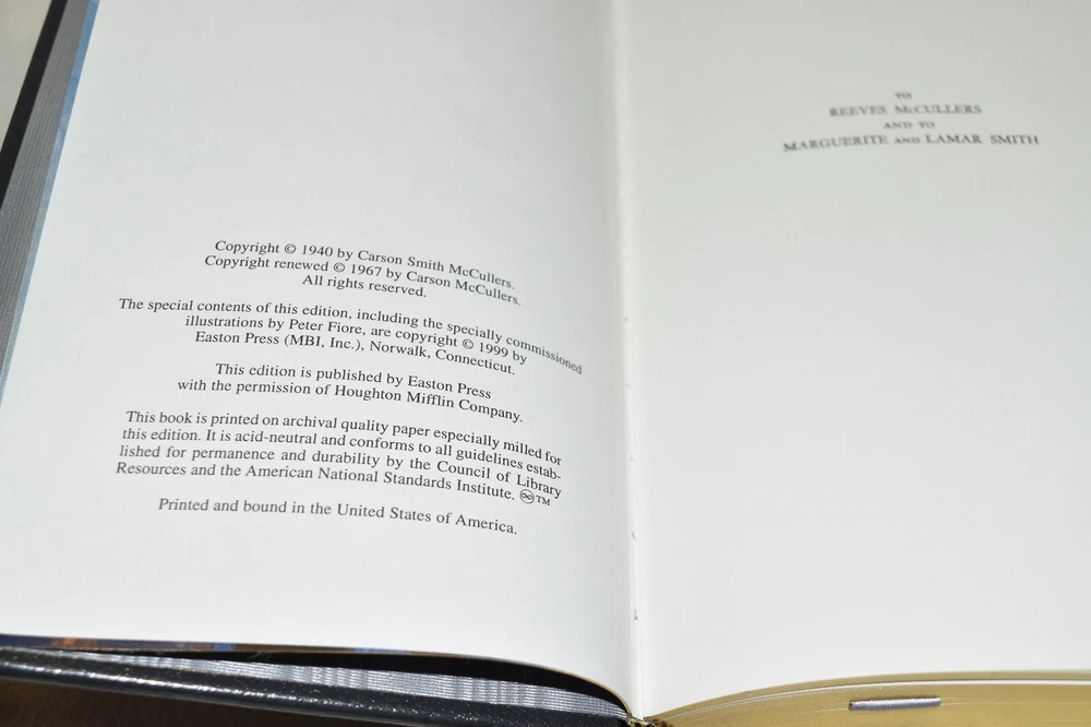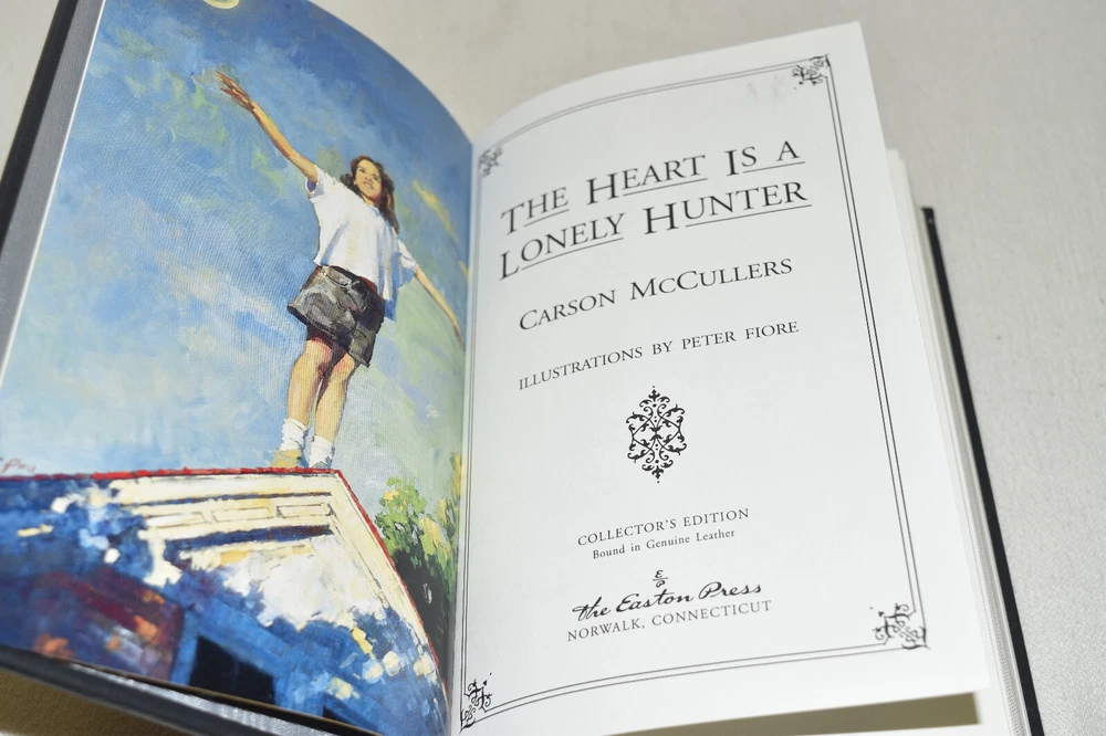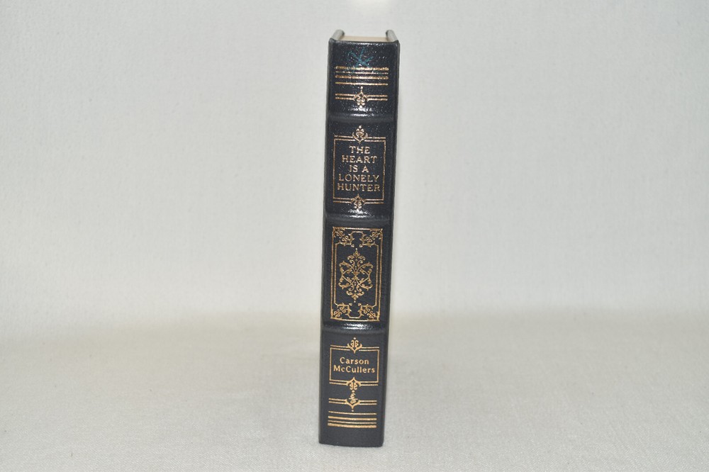 From the Easton Press Great Books of the 20th Century Collection... The Heart is a Lonely Hunter by Carson McCullers Artwork by Peter Fiore Copyright 1999 by The Easton Press Bound in Premium Full Leather This volume contains all of the classic Easton Press trimmings: Premium Leather Silk Moire Endleaves Distinctive Cover Design Hubbed Spine, Accented in Real 22KT Gold Satin Ribbon Page Marker Gilded Page Edges Long-lasting, High Quality Acid-neutral Paper Smyth-sewn Pages for Strength and Durability Beautiful Illustrations A very scarce title in any condition, this volume is in Fine condition. The front and back covers are both in terrific condition and the gilded page edges show hardly any wear (see pictures of all edges). There are no markings, bookplates, or other signs of prior ownership in this book. This book is part of the Great Books of the 20th Century Collection published by Easton Press and would be a beautiful addition to your Easton Press collection. Overall, this copy is a grade collector's book. This book is very elusive in this superior condition, as only a limited number of them were ever published, so now is the time to act. Hopefully you can add this book to your collection and enjoy it in the years to come... Please Email Me With Any Questions You Might Have! Shipping Info: Buyer to Pay Shipping and Handling International Bidders Pay Extra Shipping Seller Not Responsible For Uninsured Items Lost or Damaged in Mail Forms of Payment Accepted: Paypal Good luck and happy bidding! Powered by eBay Turbo Lister The free listing tool. List your items fast and easy and manage your active items.