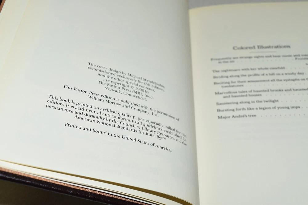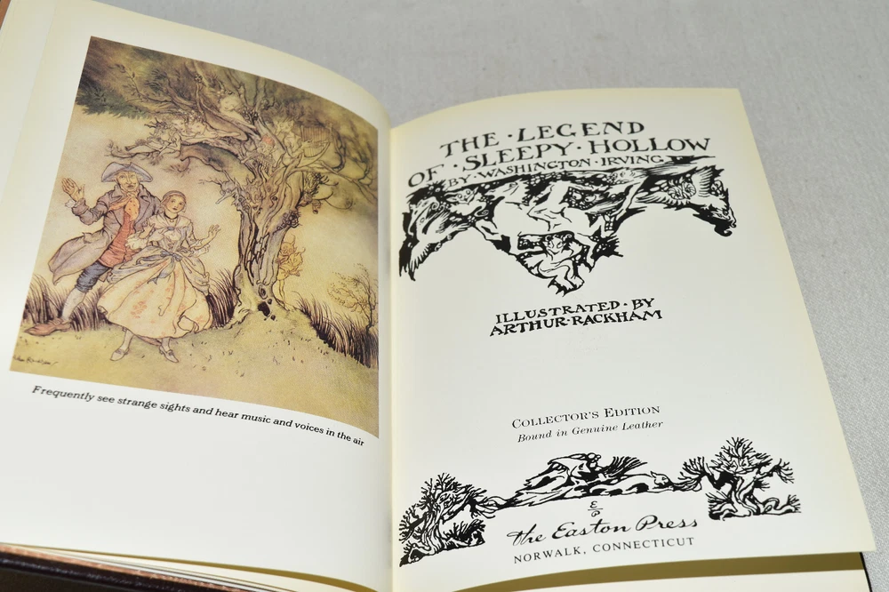 From the Easton Press Library... The Legend of Sleepy Hollow by Washington Irving Illustrated by Arthur Rackham! Copyright 1996 by The Easton Press Collector's Edition Bound in Premium Full Leather This volume contains all of the classic Easton Press trimmings: Premium Leather Decorated Endleaves Distinctive Cover Design Hubbed Spine, Accented in Real 22KT Gold Satin Ribbon Page Marker Gilded Page Edges Long-lasting, High Quality Acid-neutral Paper Smyth-sewn Pages for Strength and Durability Beautiful Illustrations A very scarce title in any condition, this volume is in Near Fine condition. The front and back covers are in terrific condition showing light corner wear and the gilded page edges show hardly any wear (see pictures). There is light residue on the second page. This book is published by Easton Press and is a Collector's Edition. It would be a beautiful addition to your Easton Press collection. Hopefully you can add this book to your collection and enjoy it in the years to come... Please Email Me With Any Questions You Might Have! Shipping Info: Buyer to Pay Shipping & Handling International Bidders Pay Extra Shipping Forms of Payment Accepted: Paypal Good luck and happy bidding! Powered by eBay Turbo Lister The free listing tool. List your items fast and easy and manage your active items.