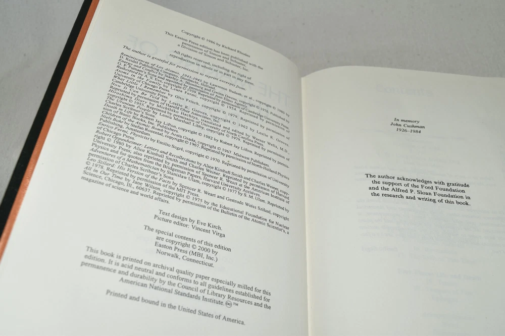 This stunning Easton Press edition of *The Making of the Atomic Bomb* is a true collector's gem. The premium full leather binding feels luxurious, and the 22KT gold accents add elegance. The Smyth-sewn pages and acid-neutral paper ensure durability, while the satin ribbon marker and gilded edges make reading a pleasure. A must-have for history buffs and book lovers alike!