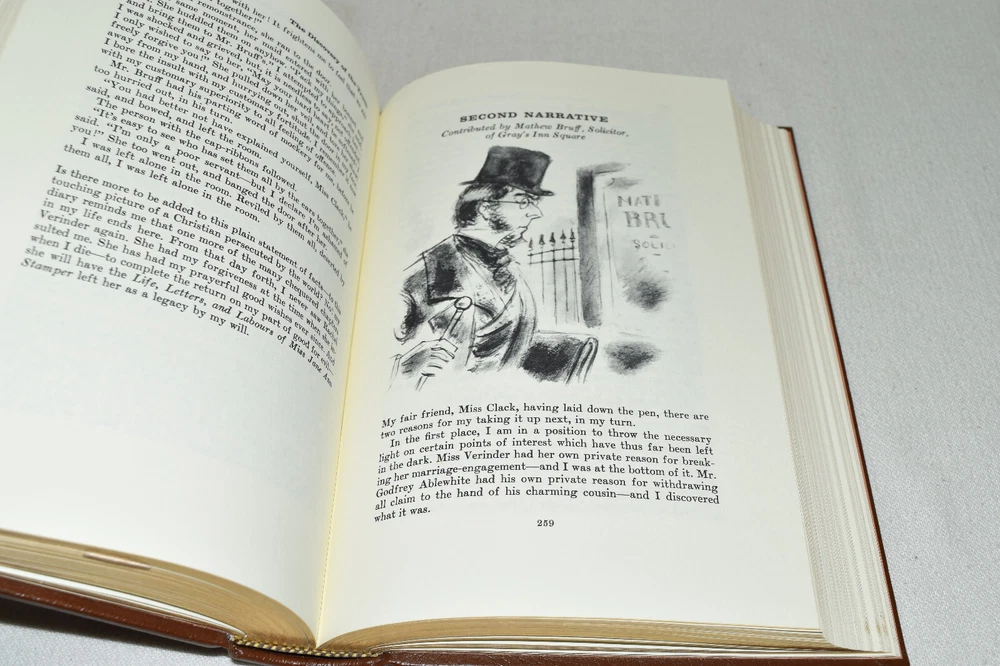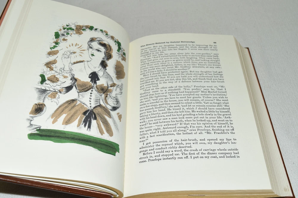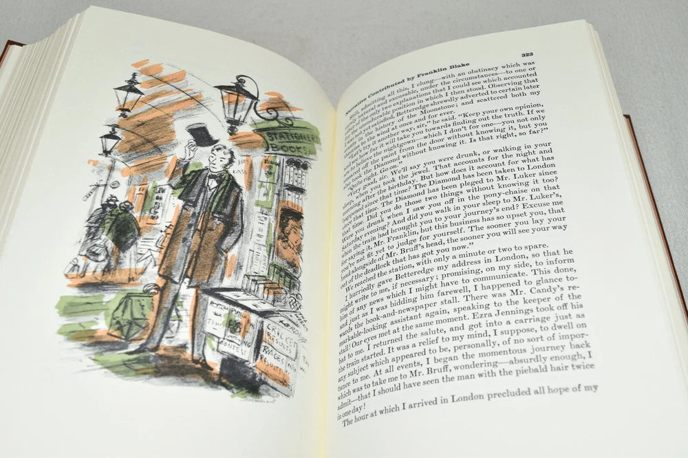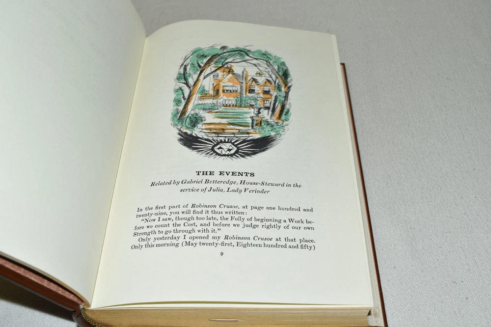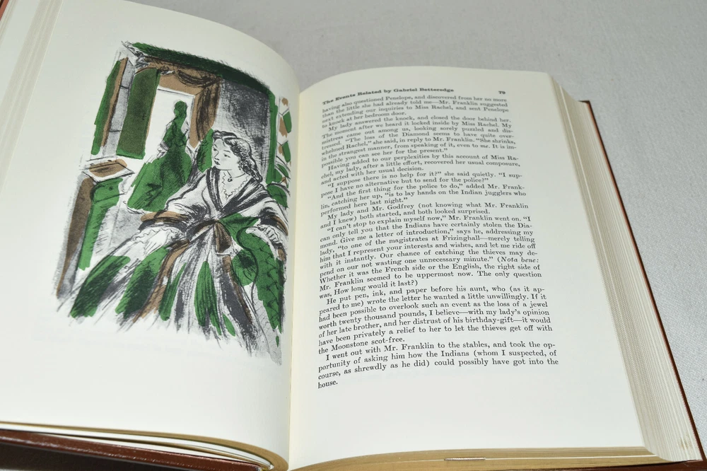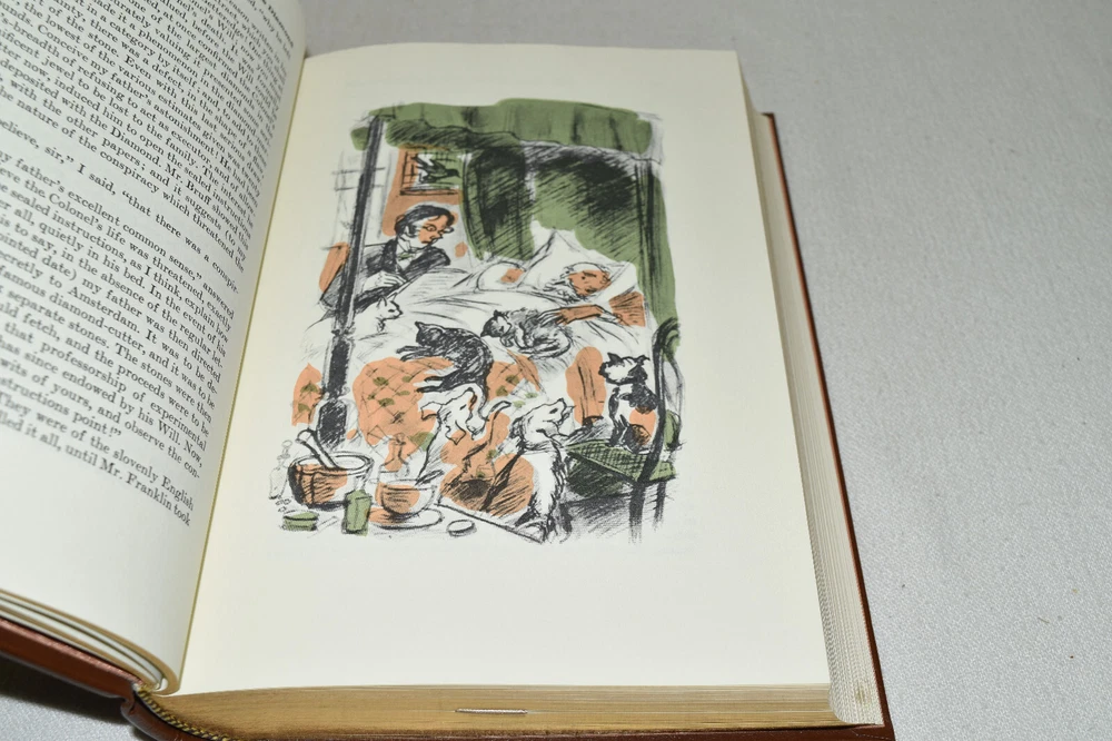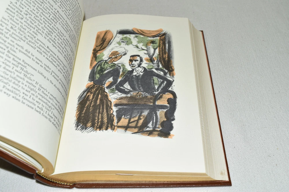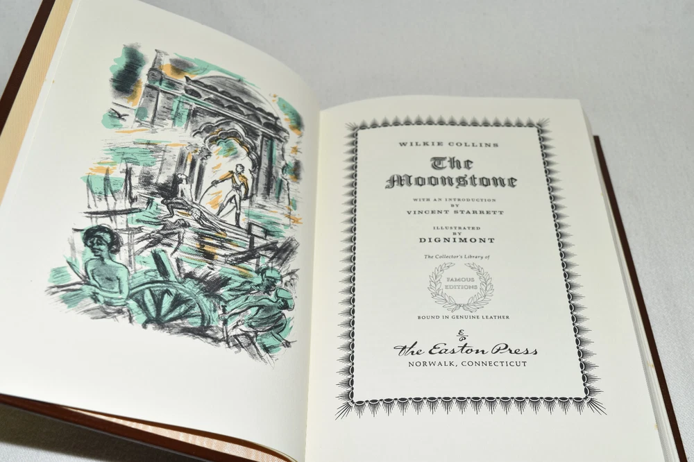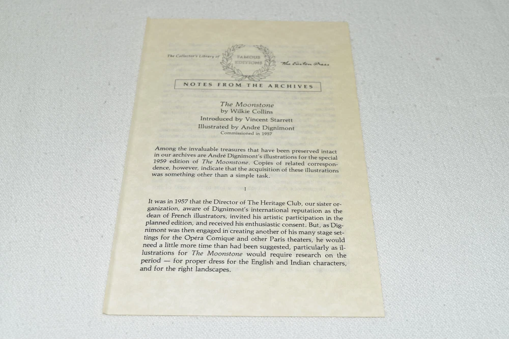 From the Easton Press Library of Famous Editions Collection... The Moonstone by Wilkie Collins Introduced by Vincent Starrett Illustrated by Digimont Copyright 1959 by The Easton Press Bound in Premium Full Leather This volume contains all of the classic Easton Press trimmings: Premium Leather Silk Moire Endleaves Distinctive Cover Design Hubbed Spine, Accented in Real 22KT Gold Satin Ribbon Page Marker Gilded Page Edges Long-lasting, High Quality Acid-neutral Paper Smyth-sewn Pages for Strength and Durability Beautiful Illustrations A very scarce title in any condition, this volume is in Fine condition. The front and back covers are both in terrific condition and the gilded page edges show only minor wear (see pictures of all edges). There is faint residue on the second page. This book is part of the Library of Famous Editions Collection published by Easton Press. It comes complete with Collector's Notes and would be a beautiful addition to your Easton Press collection. Hopefully you can add this book to your collection and enjoy it in the years to come... Please Email Me With Any Questions You Might Have! Shipping Info: Buyer to Pay Shipping and Handling International Bidders Pay Extra Shipping Seller Not Responsible For Uninsured Items Lost or Damaged in Mail Forms of Payment Accepted: Paypal Good luck and happy bidding! Powered by eBay Turbo Lister The free listing tool. List your items fast and easy and manage your active items.