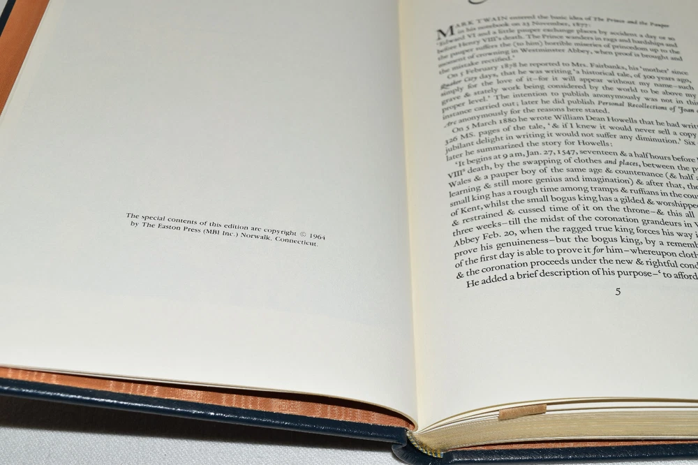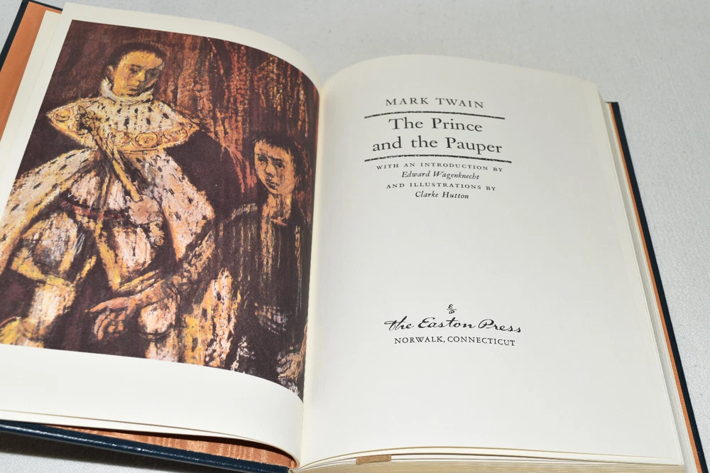 From the Easton Press Collection... The Prince and the Pauper by Mark Twain Edited by Edwards Wagenknecht Illustrated by Clarke Hutton Collector's Edition Copyright 1964 by The Easton Press Bound in Premium Full Leather This volume contains all of the classic Easton Press trimmings: Premium Leather Silk Moire Endleaves Distinctive Cover Design Hubbed Spine, Accented in Real 22KT Gold Satin Ribbon Page Marker Gilded Page Edges Long-lasting, High Quality Acid-neutral Paper Smyth-sewn Pages for Strength and Durability Beautiful Illustrations A very scarce title in any condition, this Easton Press Limited Edition is in Fine condition! The front and back covers are both in near perfect condition and the gilded page edges show hardly any wear (see pictures of all gilt sides). There is blank bookplate affixed to the second page. This book was published by Easton Press and would be a beautiful addition to your Easton Press collection. Overall, this copy is a grade collector's book. This book is very elusive in this superior condition, as only a limited number of them were ever published, so now is the time to act. Hopefully you can add this book to your collection and enjoy it in the years to come... Please Email Me With Any Questions You Might Have! Shipping Info: Buyer to Pay Shipping and Handling International Bidders Pay Extra Shipping Good luck and happy bidding!